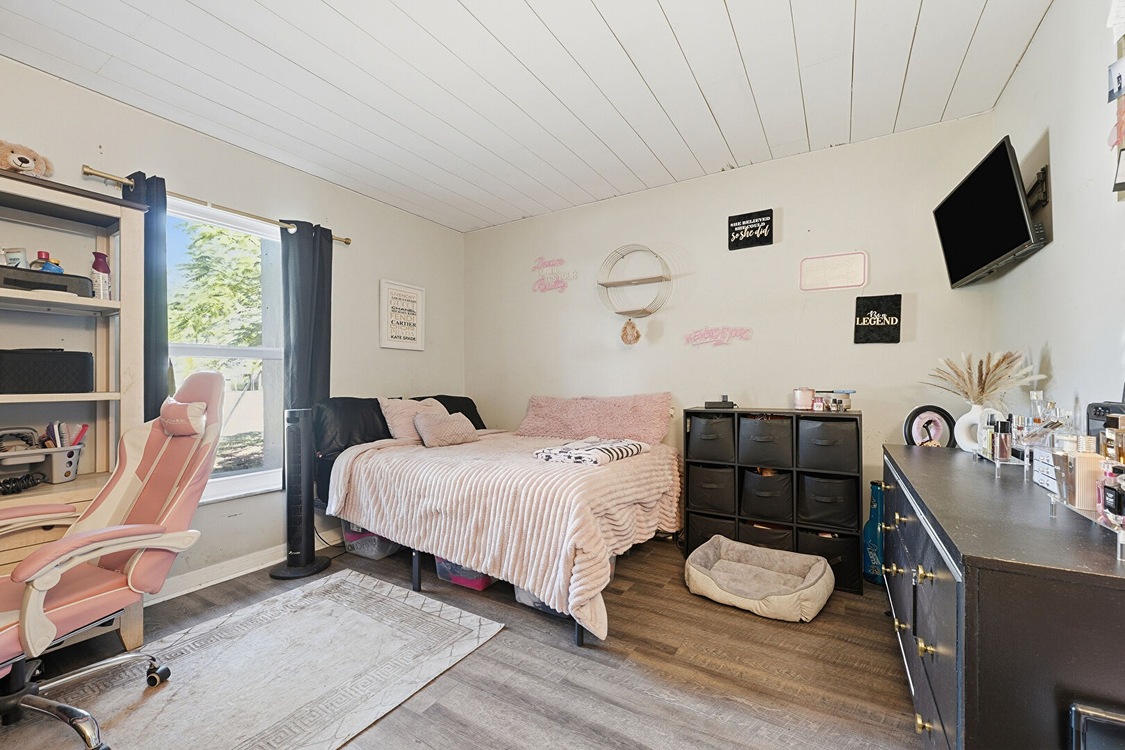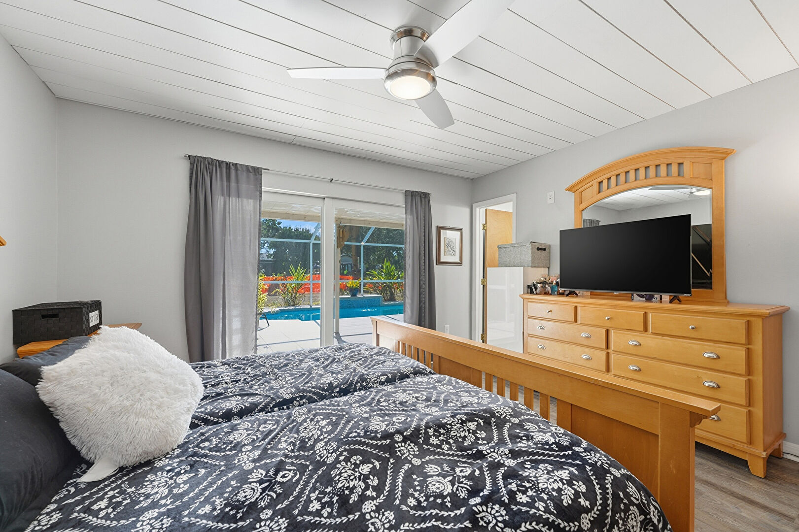Access To Exterior, Baseboards Wall, Ceiling Fan, Closet, Drywall, Ensuite Bathroom, Natural Light, Vent, Wood Ceiling, Wood Finish Floor, Access To Exterior, Drywall, Wood Ceiling