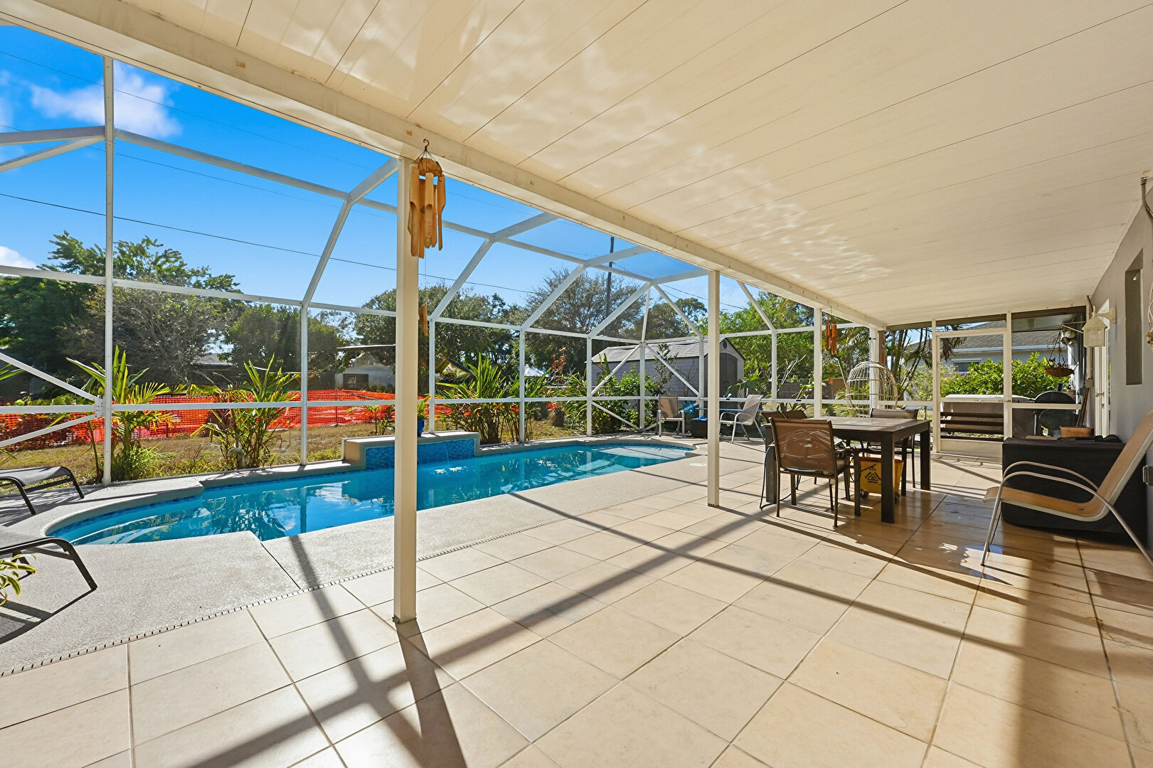 Fence, Grill, Lanai, Lawn, Outdoor Dining Area, Outdoor Structure, Patio, Pool, Pool Water Feature, Sunroom, Vent, French Doors, Patio, Porch, Shed