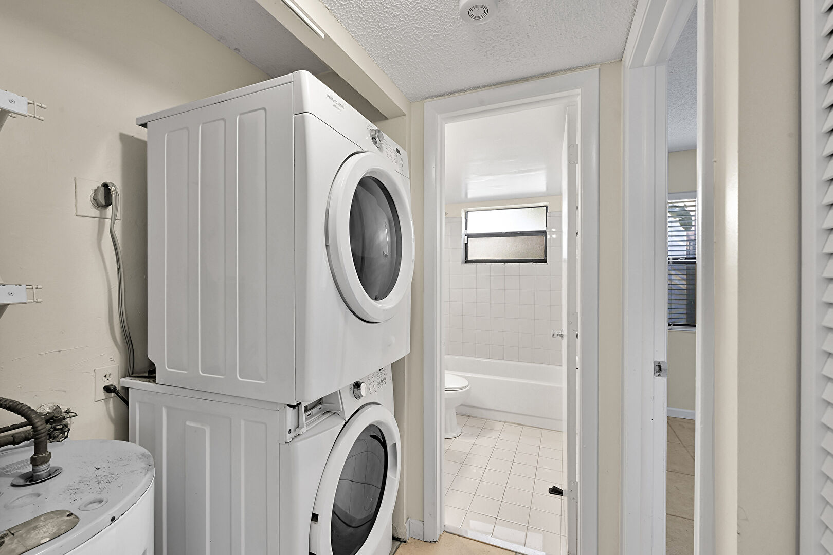 Baseboards Wall, Drywall, Laundry, Natural Light, Textured Ceiling, Tile Floor, Vent, Ceiling Fan, Tile Floor