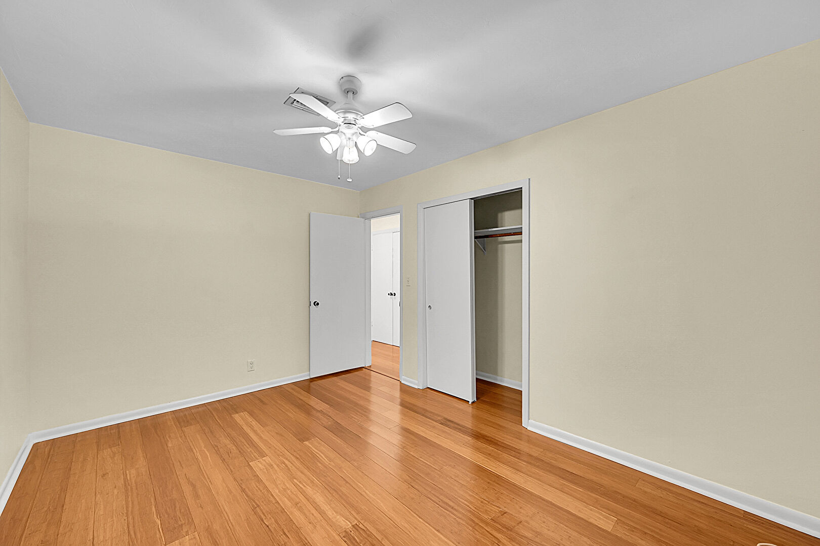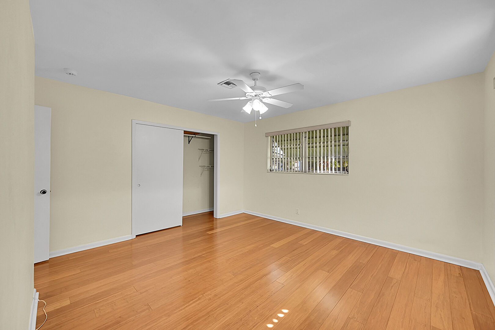 Baseboards Wall, Ceiling Fan, Closet, Drywall, Natural Light, Vent, Wood Finish Floor, Closet, Natural Light, Wood Finish Floor
