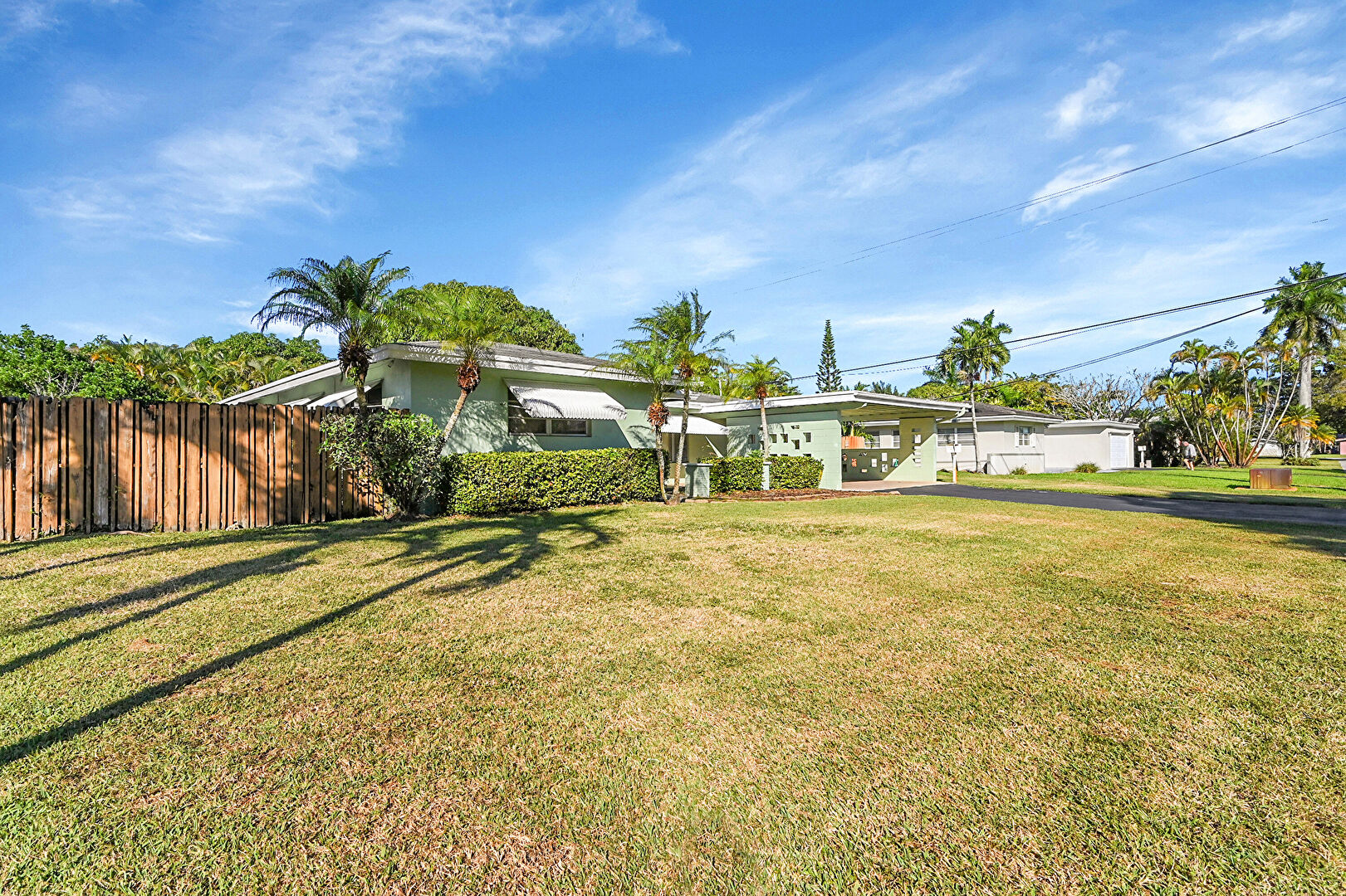 Attached Carport, Awning, Downspout, Driveway, Fence, Lawn, Residential View, Stucco Siding, Attached Carport, Awning, Gutters, Porch