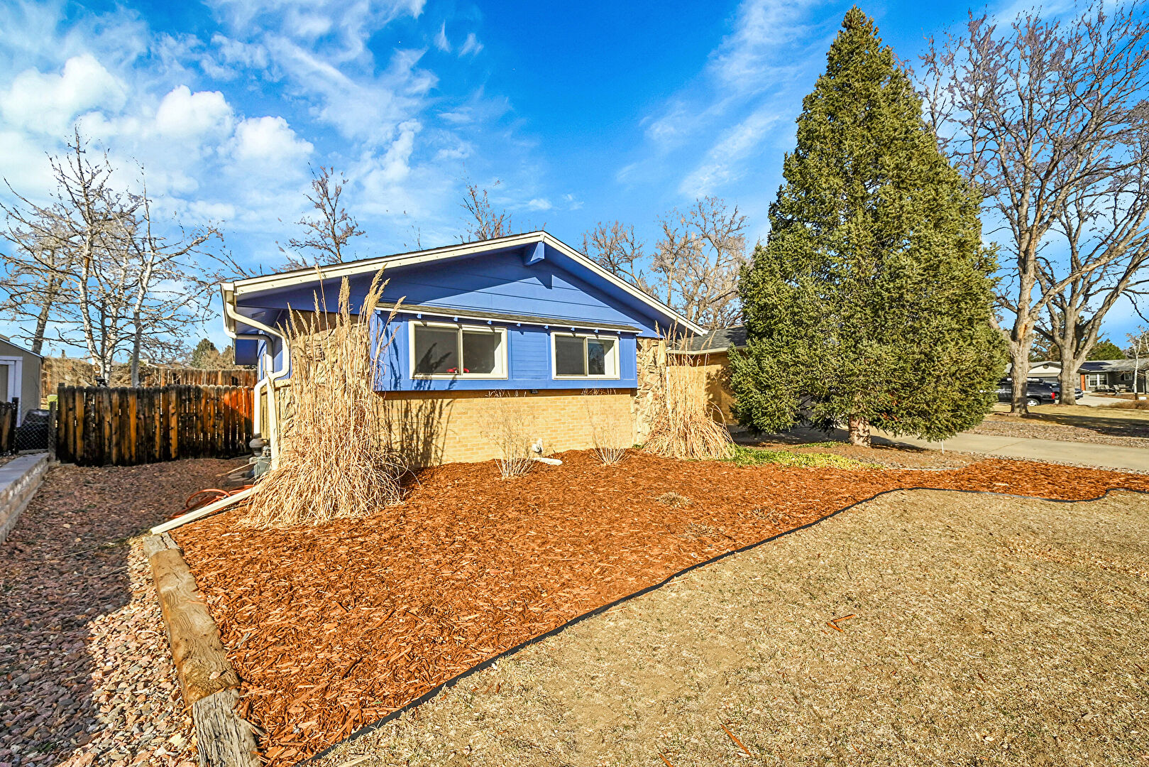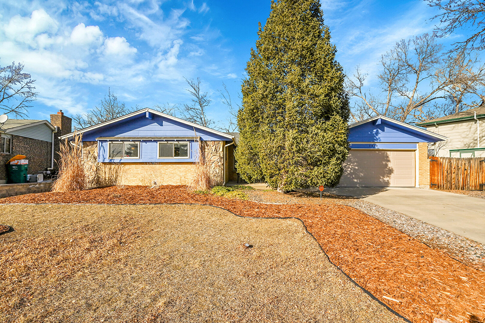Brick Siding, Chimney, Downspout, Driveway, Fence, Garage, Gutters, Horizontal Siding, Satellite Dish, Stucco Siding, Brick Siding, Downspout, Horizontal Siding