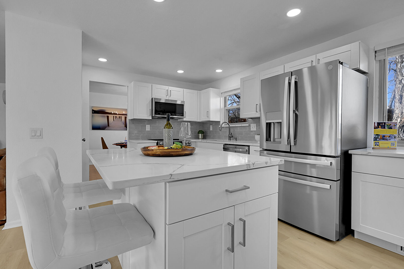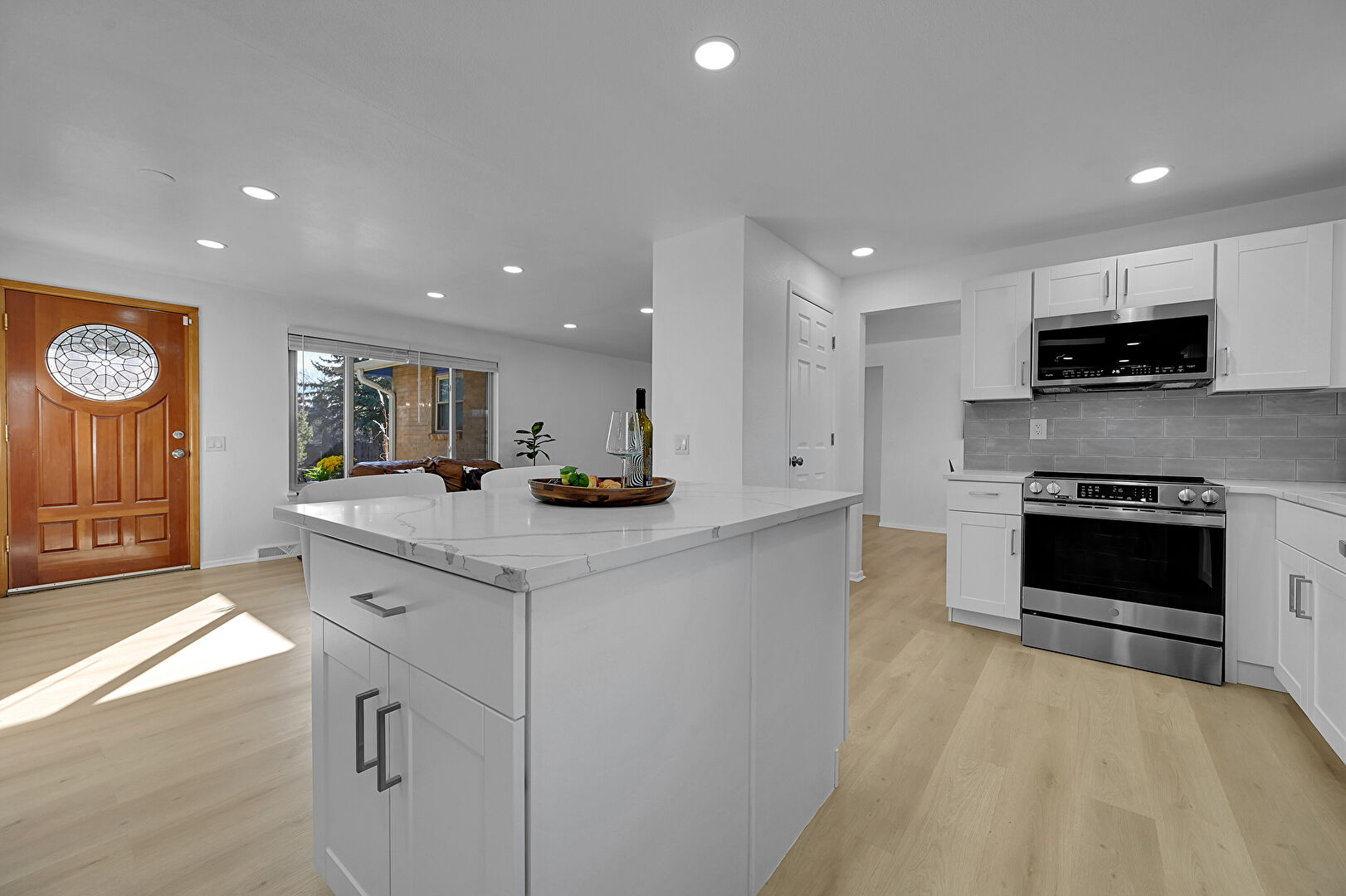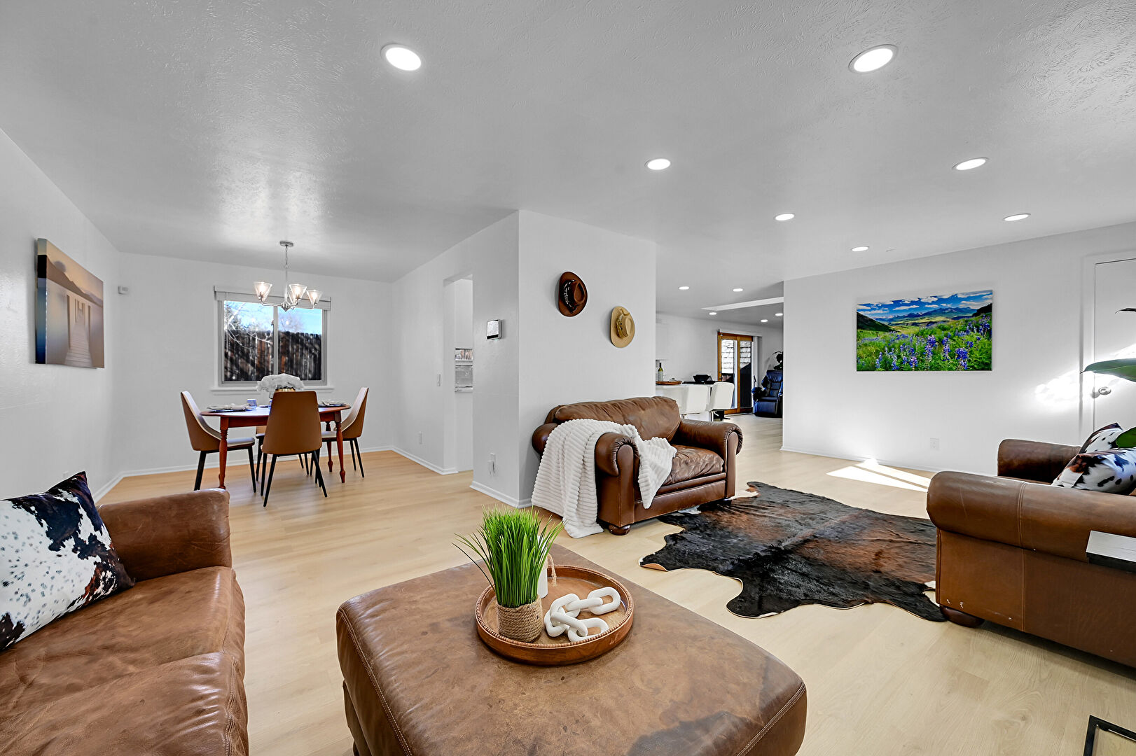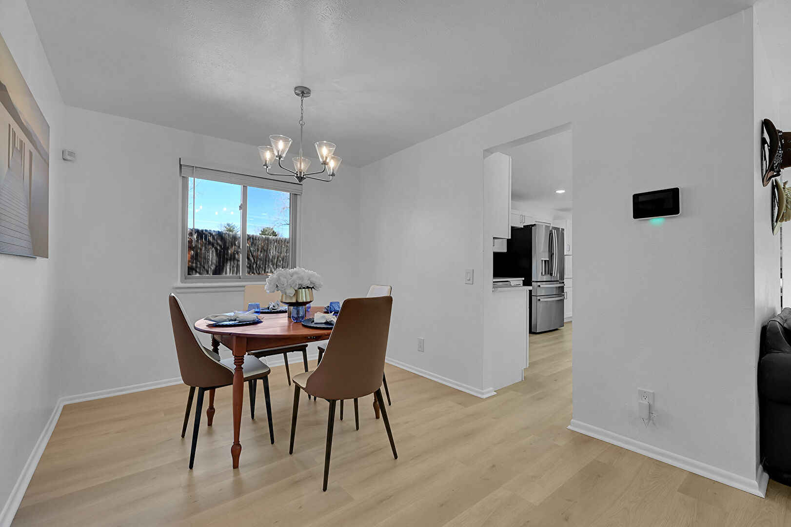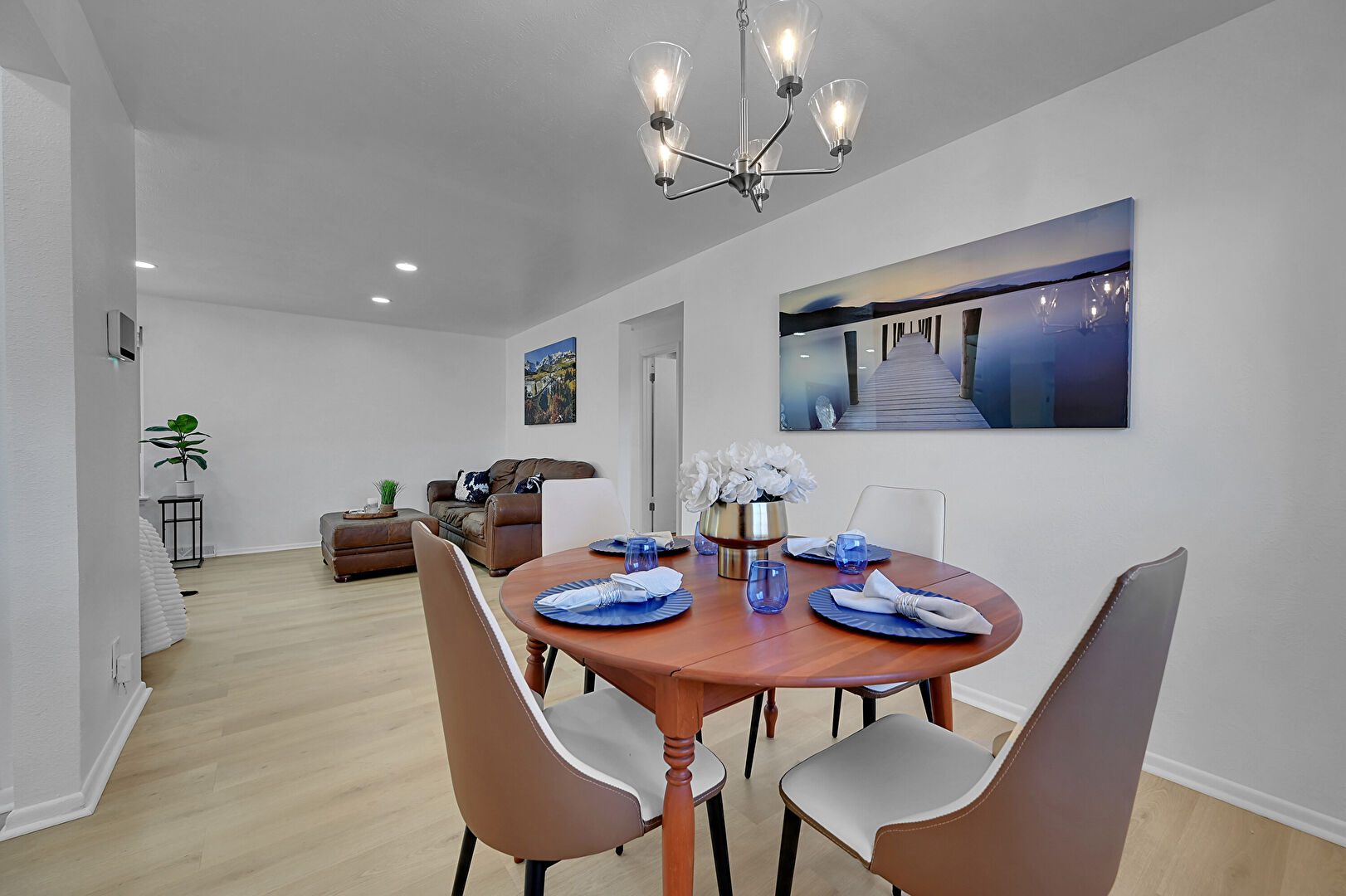 Baseboards Wall, Drywall, Natural Light, Notable Chandelier, Recessed Lighting, Wood Finish Floor, Baseboards Wall, Notable Chandelier