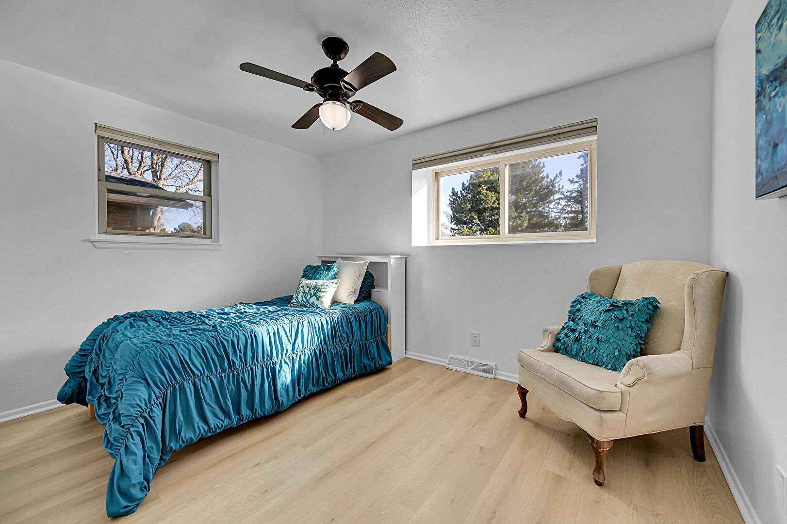 Baseboards Wall, Ceiling Fan, Drywall, Natural Light, Smoke Carbon Monoxide Detector, Wood Finish Floor, Ceiling Fan, Closet, Drywall