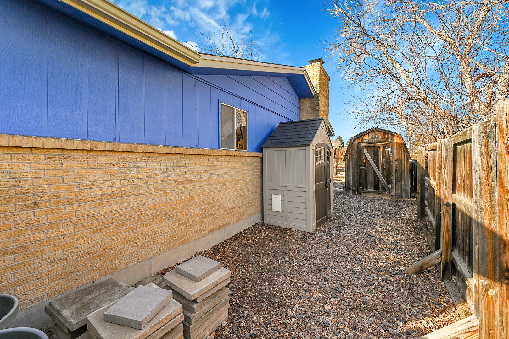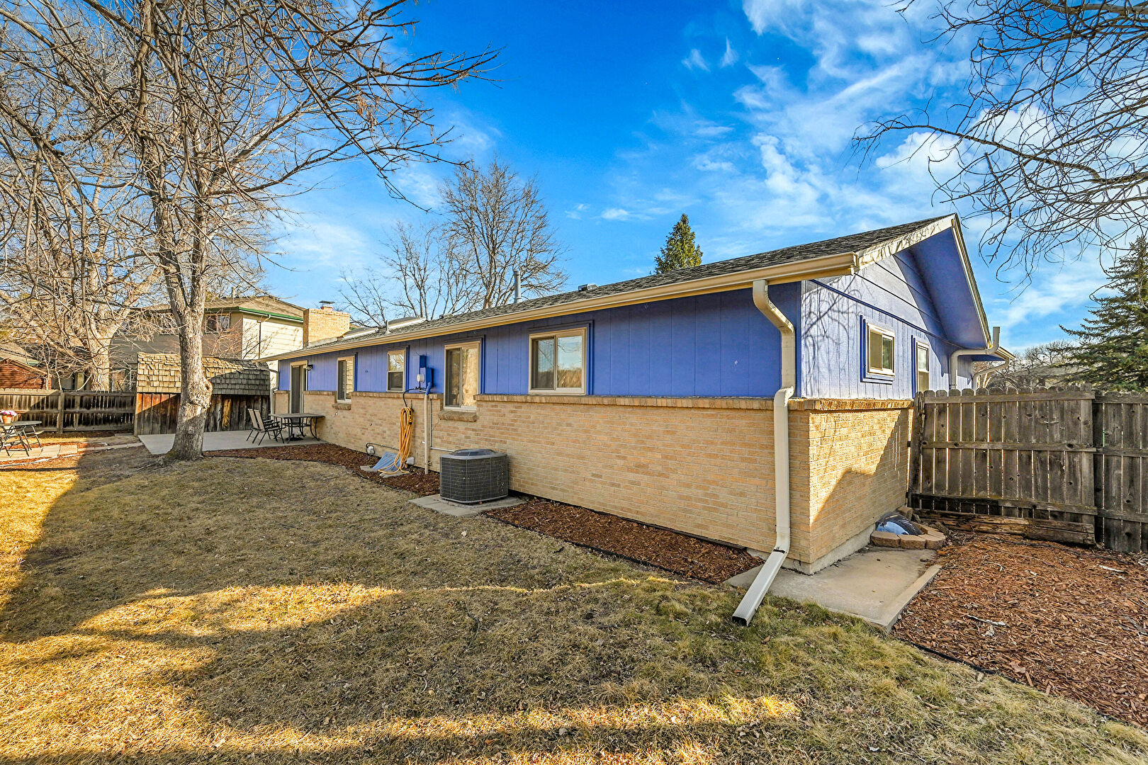 Brick Siding, Central Ac, Chimney, Concrete Foundation, Downspout, Fence, Gutters, Horizontal Siding, Lawn, Shed, Vertical Siding, Brick Siding, Downspout, Outdoor Structure