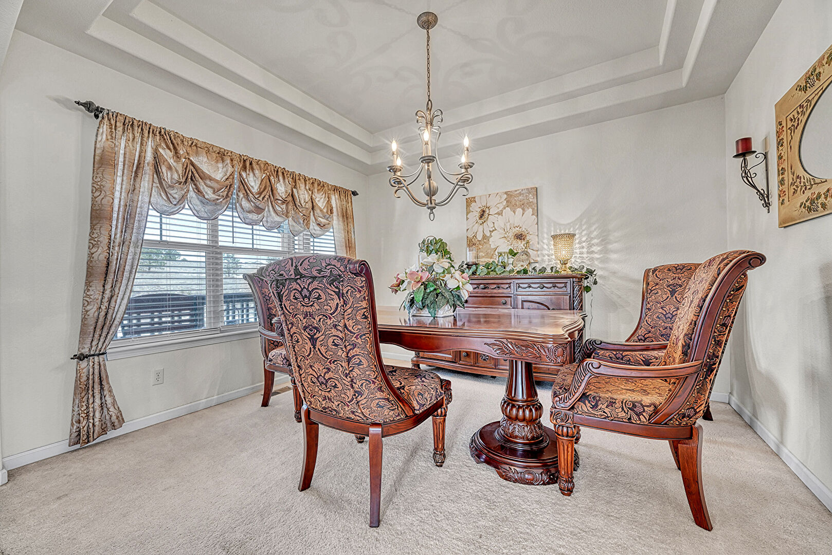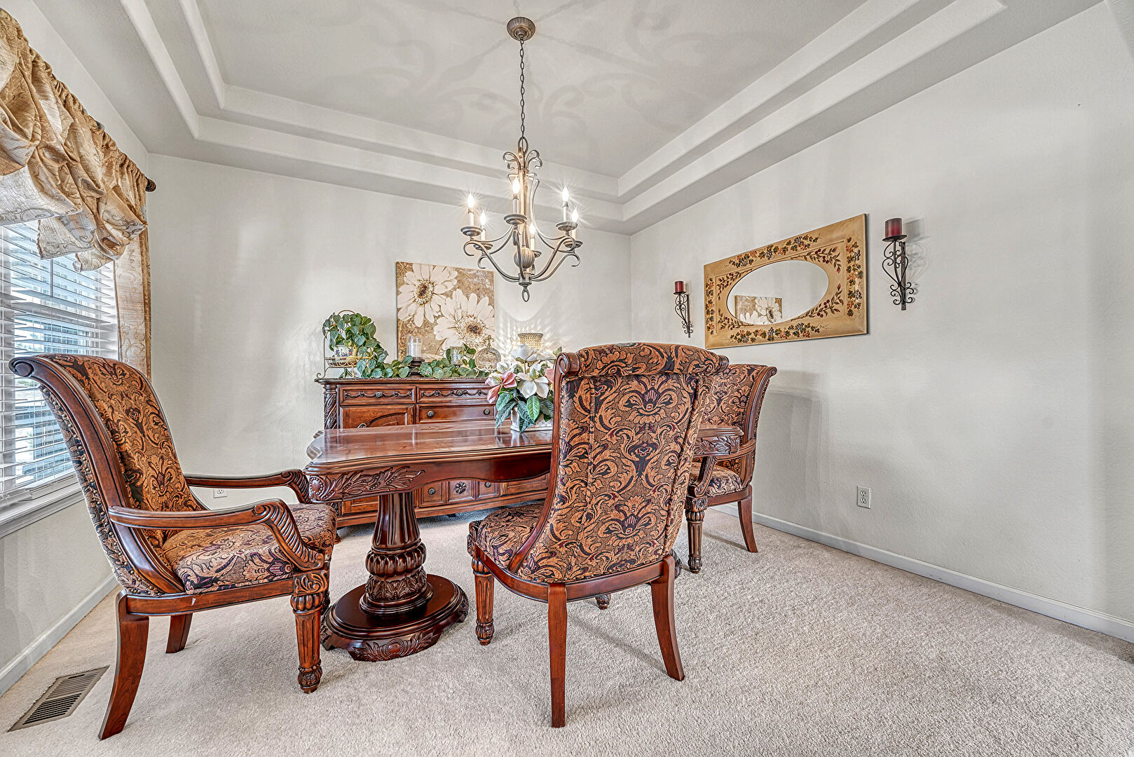 Baseboards Wall, Carpet, Drywall, Natural Light, Notable Chandelier, Tray Ceiling, Natural Light, Vent