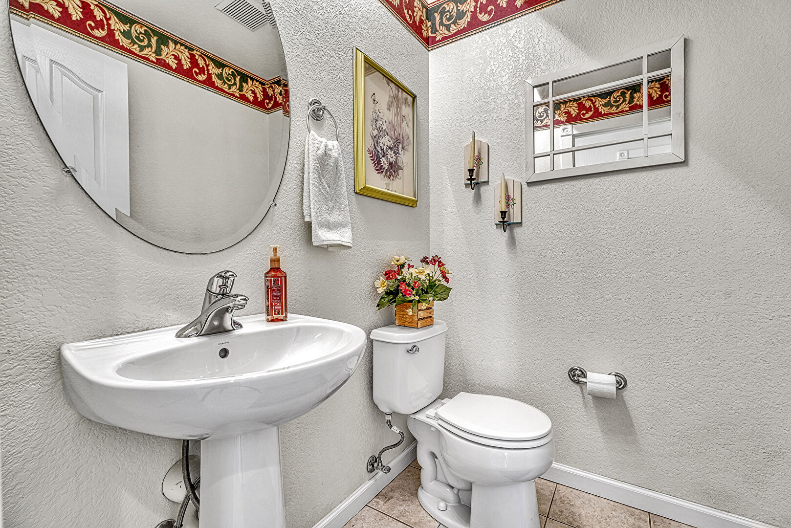 Baseboards Wall, Double Vanity, Drywall, Full Bathroom, Half Bathroom, Natural Light, Tile Floor, Vent, Combined Bath Shower, Textured Wall
