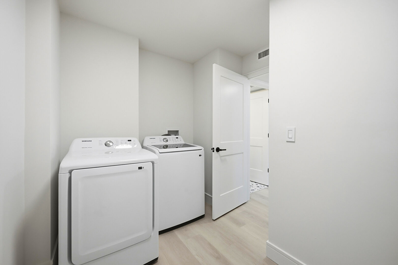 Baseboards Wall, Drywall, Laundry, Washer Hookup, Wood Finish Floor, Vent