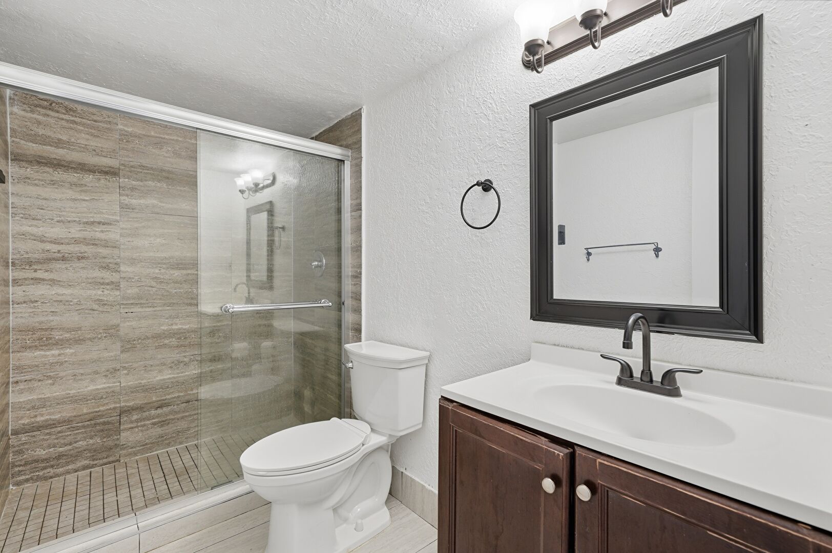 Baseboards Wall, Full Bathroom, Textured Wall, Tile Floor, Vanity, Full Bathroom, Textured Ceiling