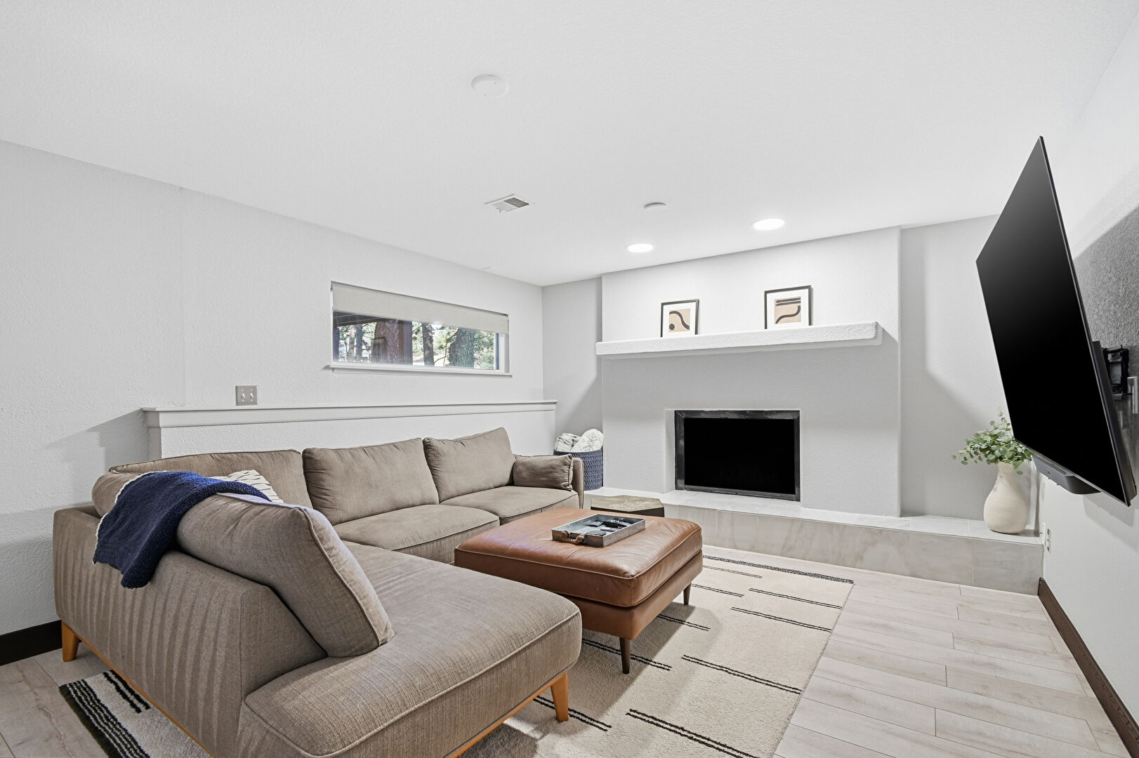 Baseboards Wall, Basement, Drywall, Vent, Wood Finish Floor, Accent Wall