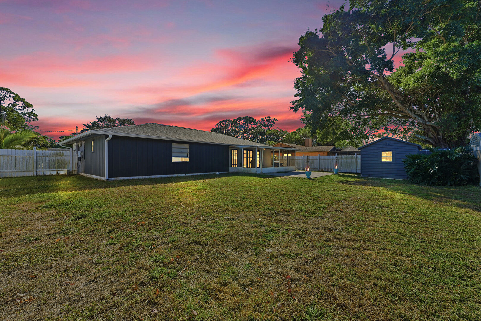 Downspout, Fence, Lawn, Outdoor Structure, Patio, Vertical Siding, Gutters