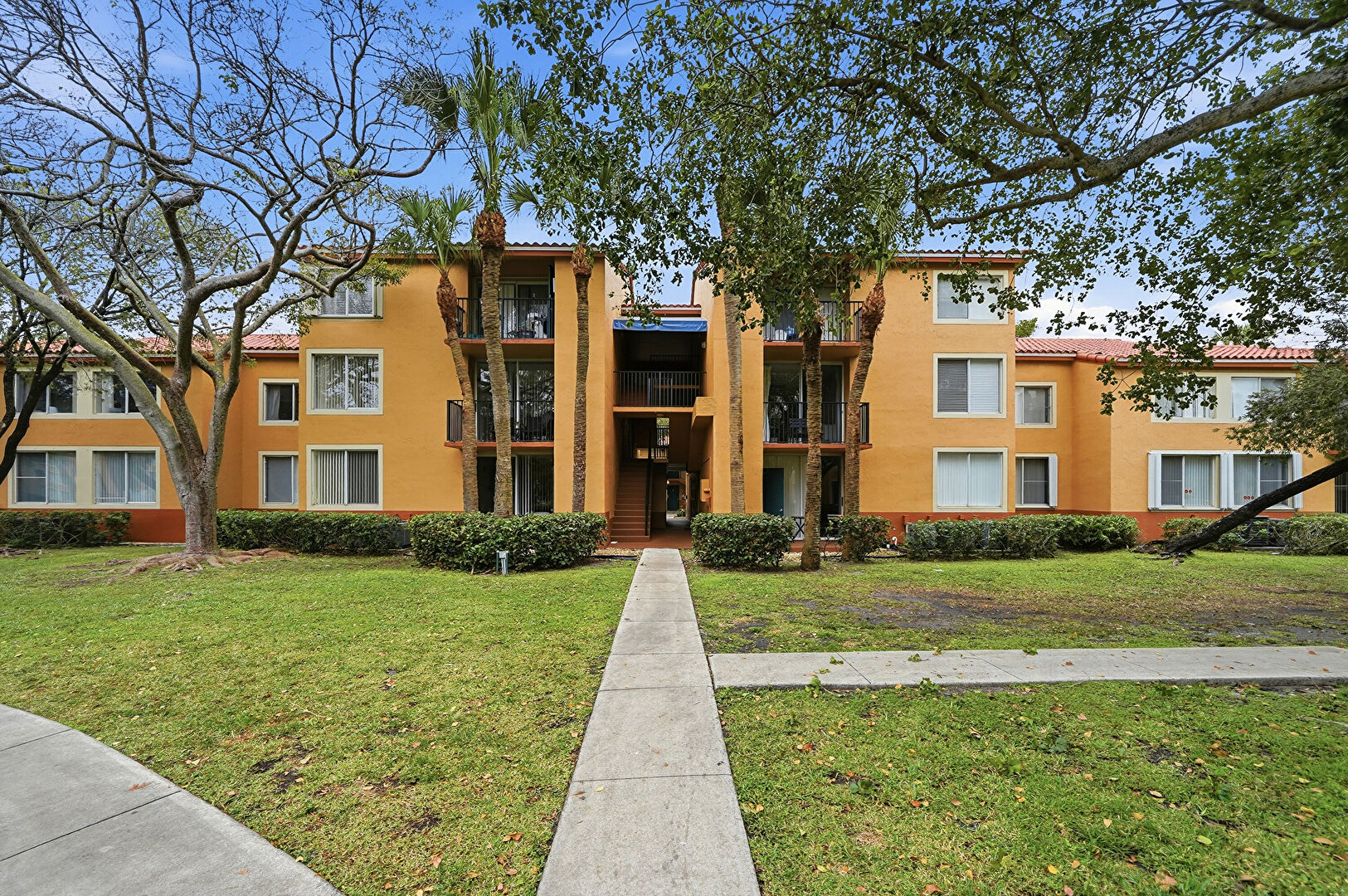 Lawn, Stairs, Apartment Complex View, Fence