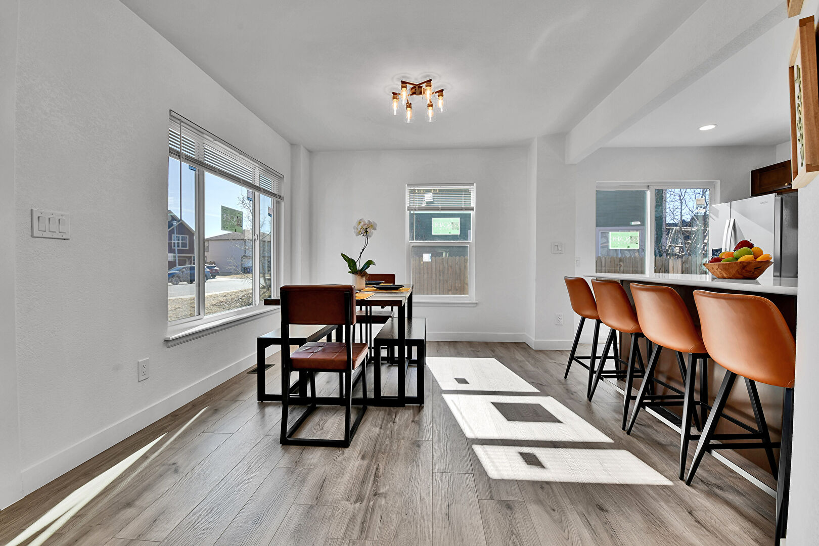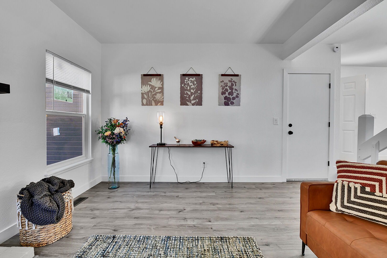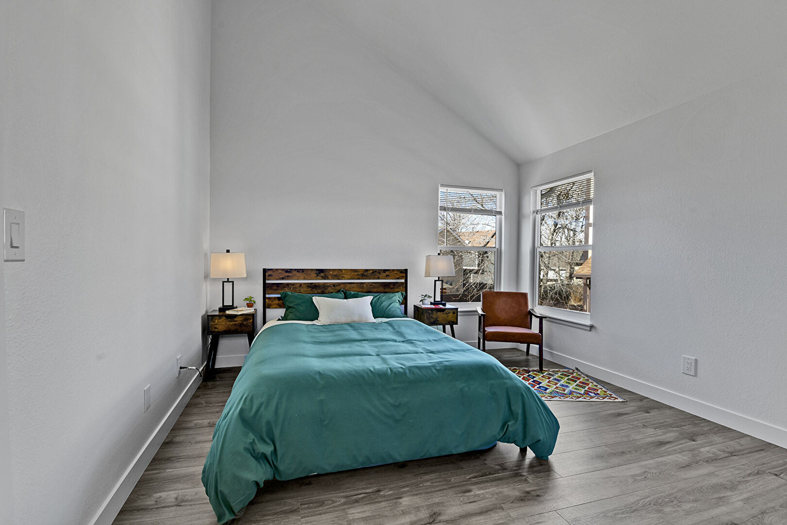 Drywall, Natural Light, Vaulted Ceiling, Vent, Wood Finish Floor, Baseboards Wall