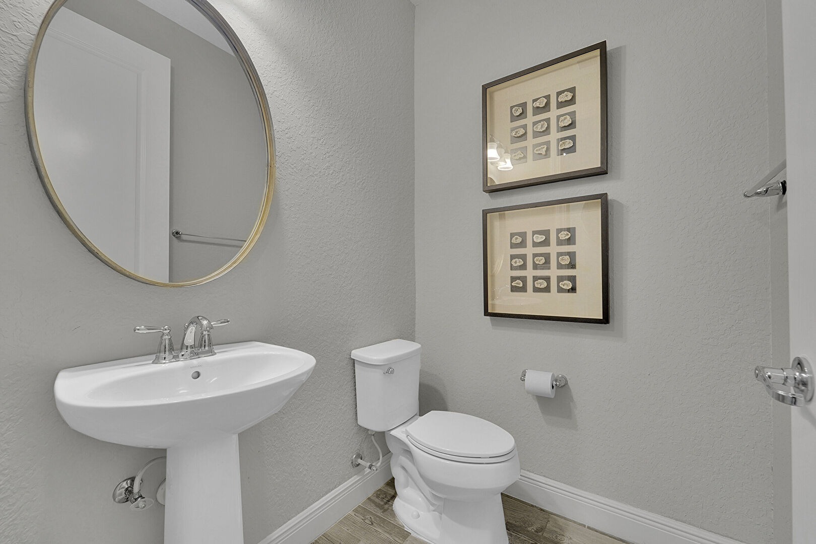 Baseboards Wall, Half Bathroom, Textured Wall, Wood Finish Floor