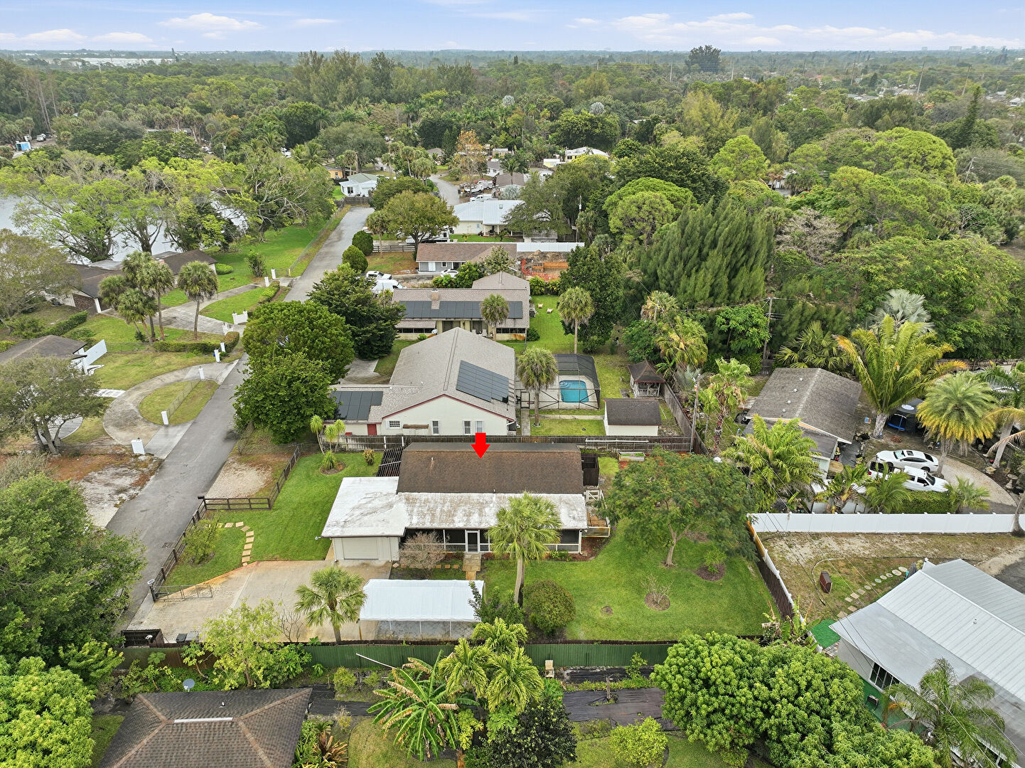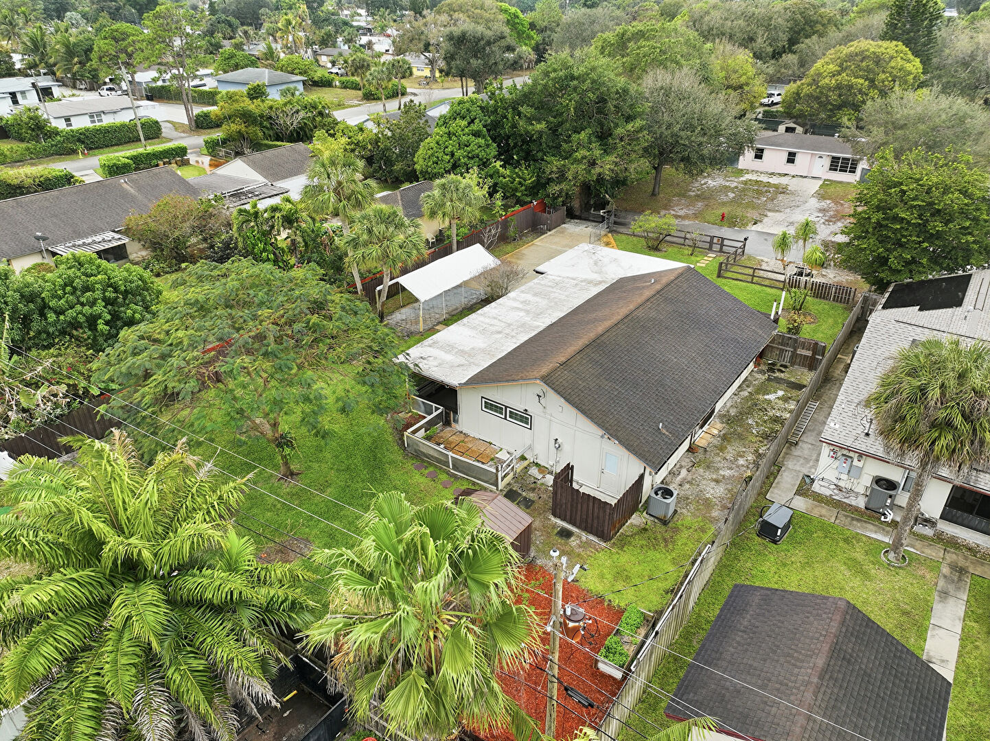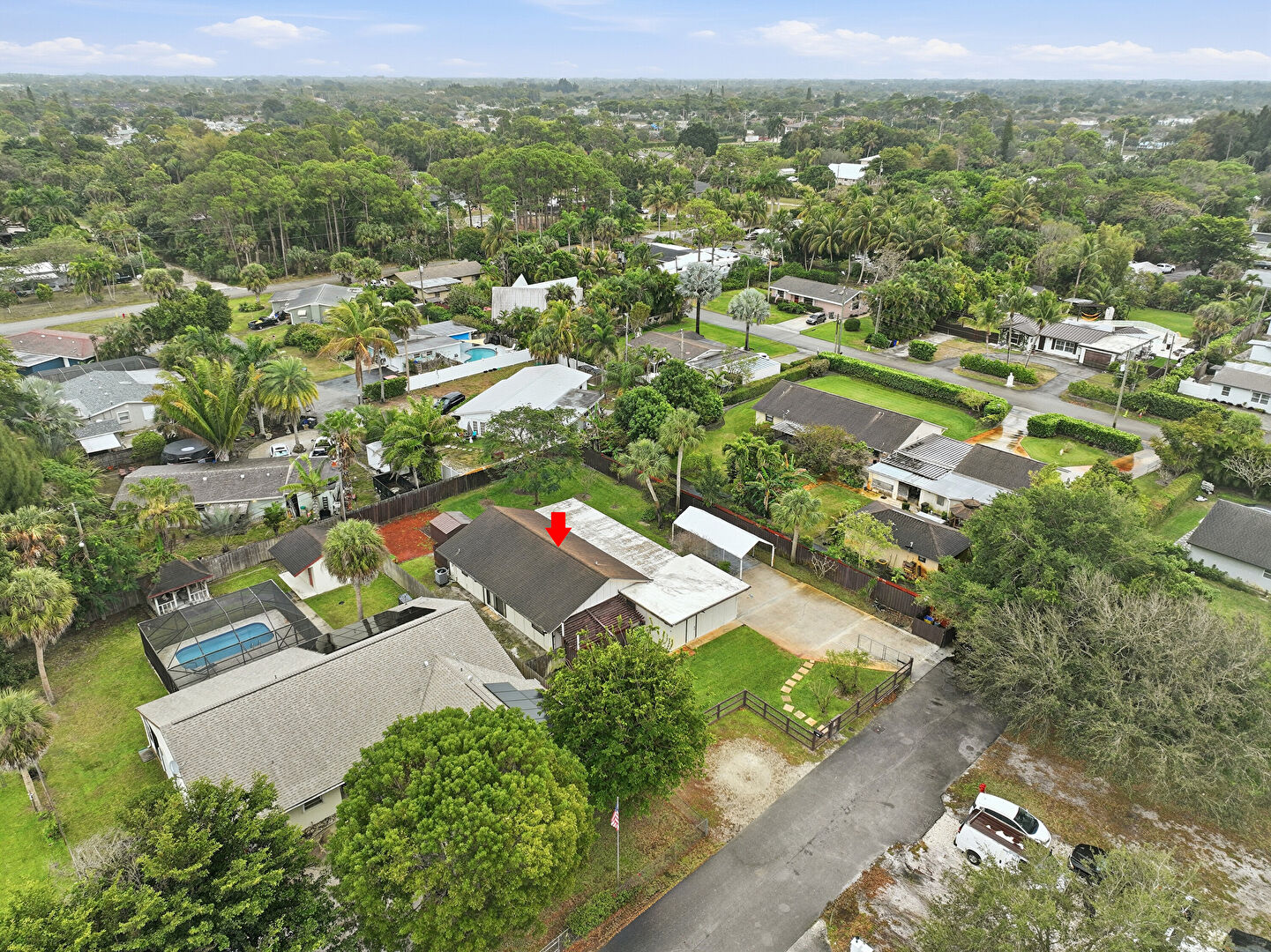 Detached Carport, Driveway, Fence, Lawn, Outdoor Structure, Patio, Pergola, Shed, Fence, Sunroom, Woods View