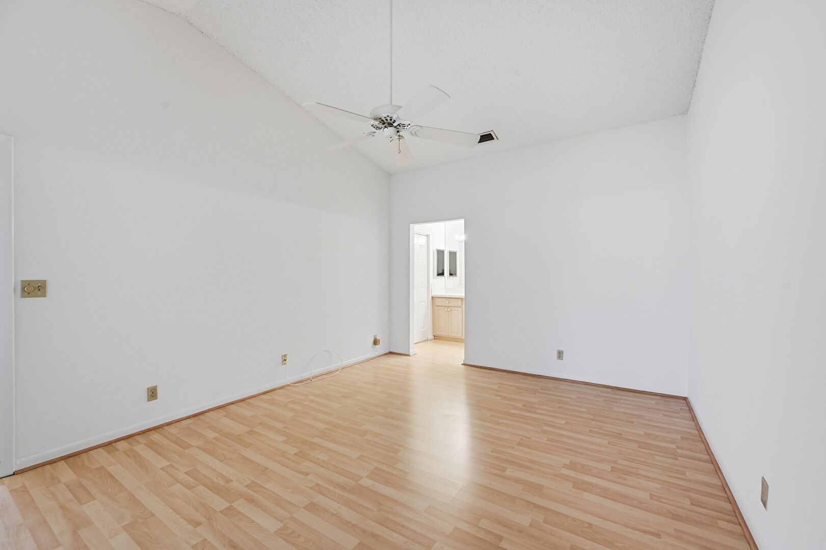 Baseboards Wall, Ceiling Fan, Drywall, Ensuite Bathroom, High Ceiling, Natural Light, Vaulted Ceiling, Vent, Wood Finish Floor, High Ceiling, Vaulted Ceiling
