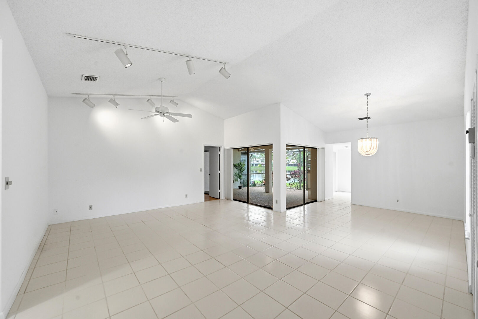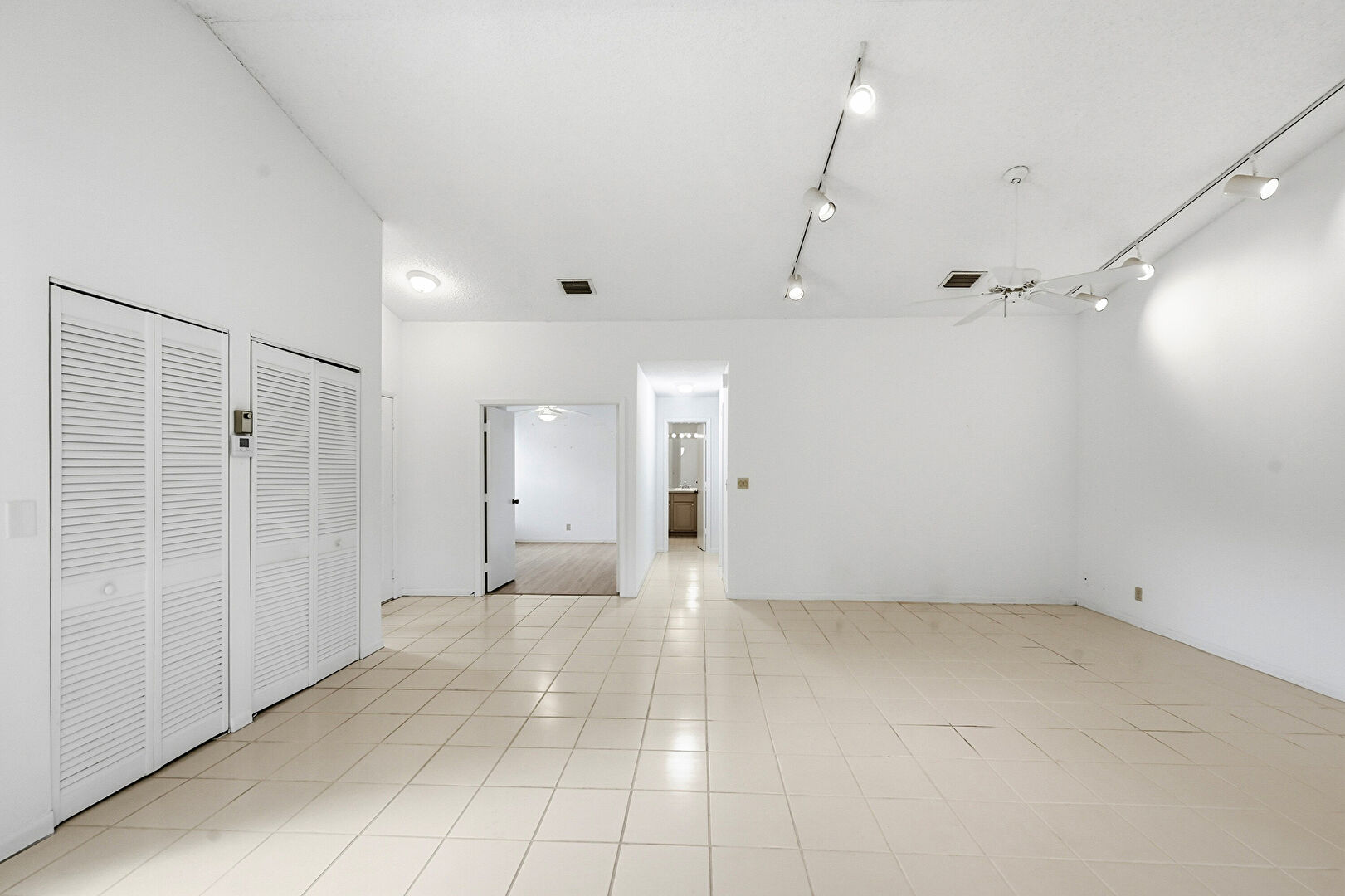Baseboards Wall, Cathedral Ceiling, Ceiling Fan, Drywall, High Ceiling, Natural Light, Textured Ceiling, Tile Floor, Track Lighting, Vaulted Ceiling, Vent, Vaulted Ceiling, Vent
