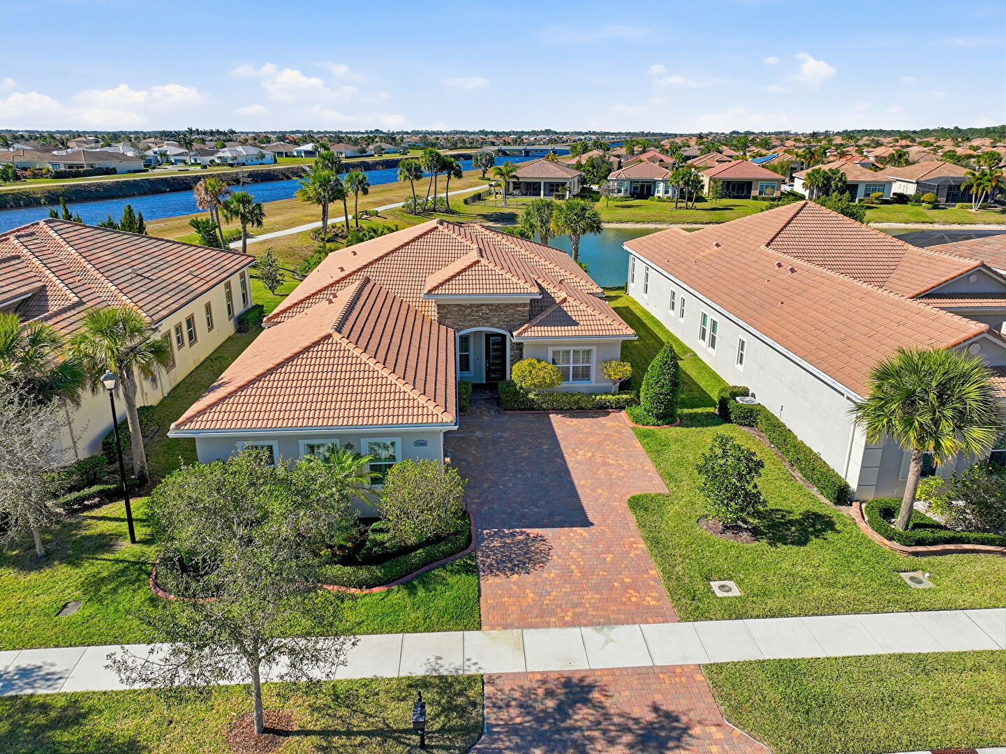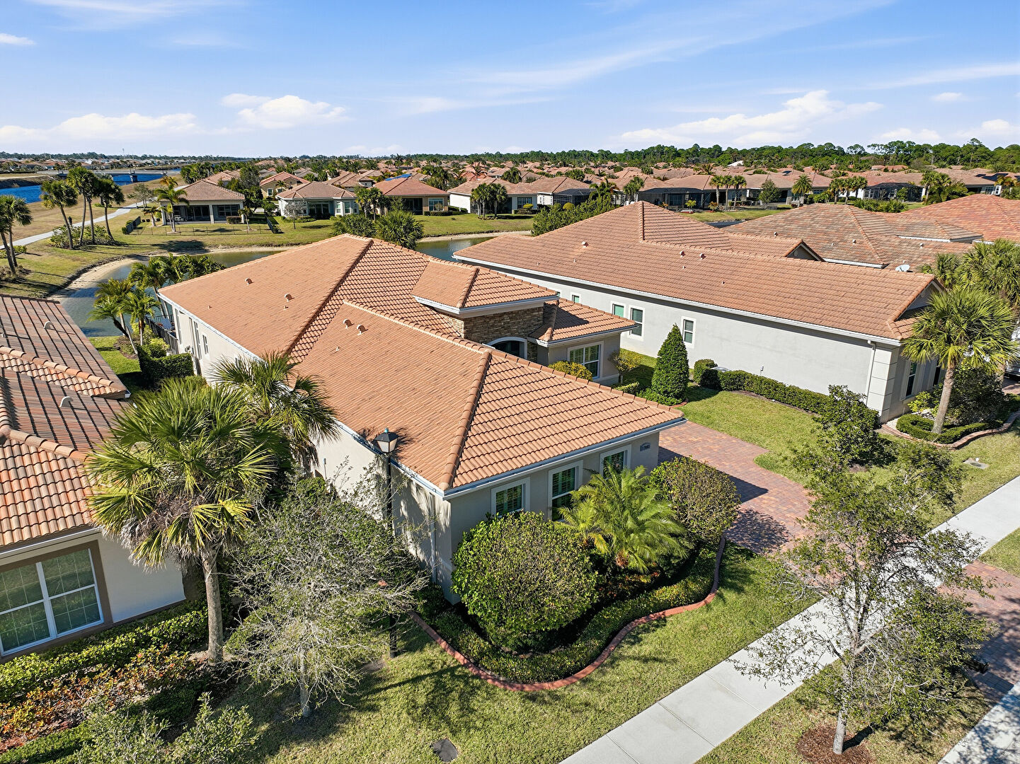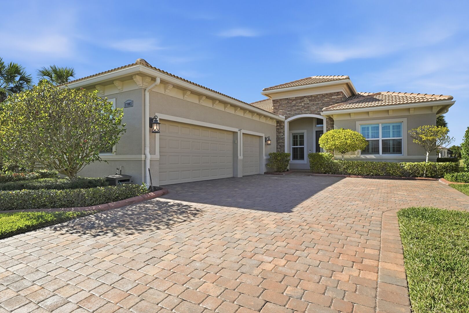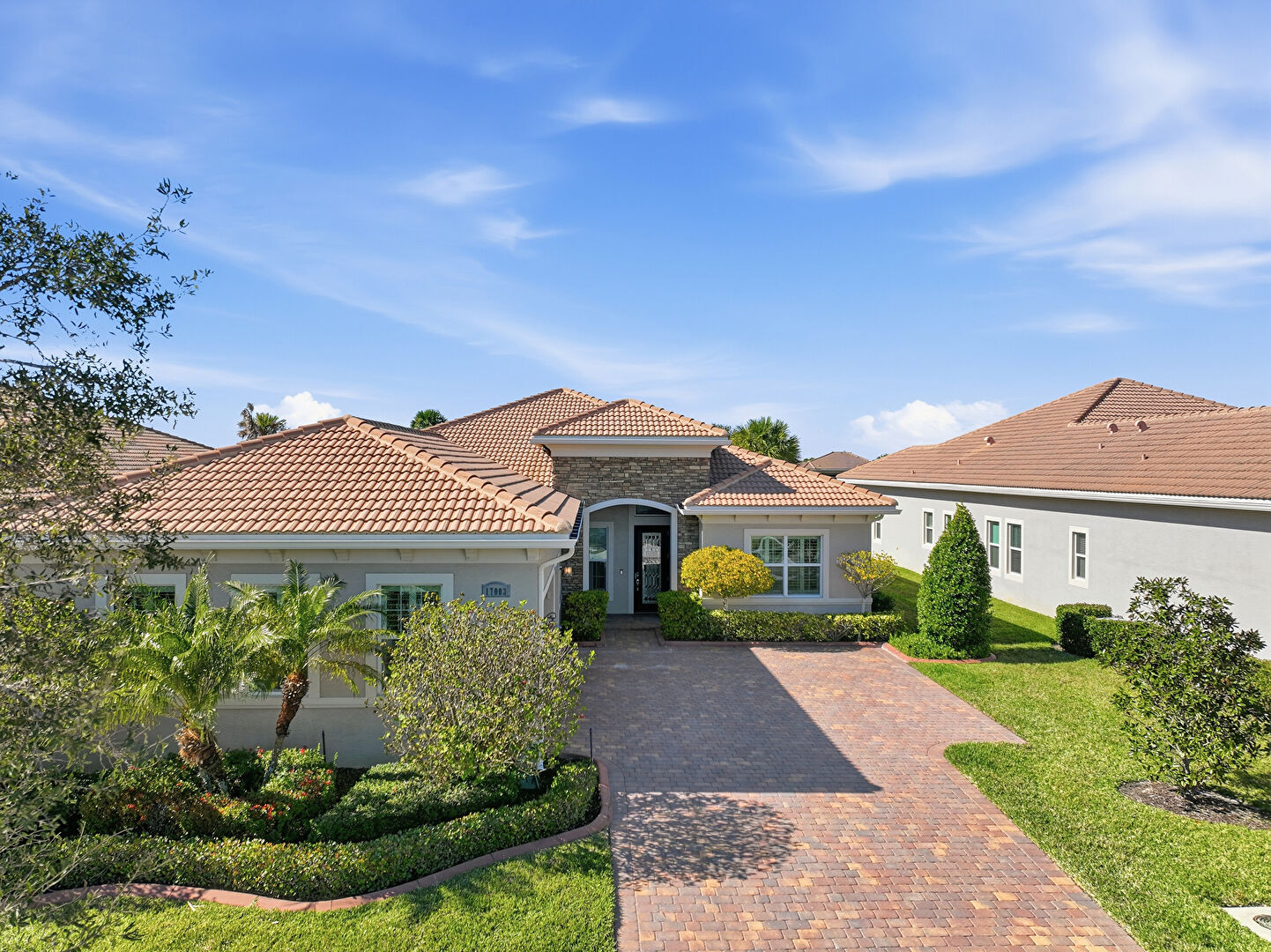 Downspout, Driveway, Gutters, Lawn, Parking Pad, Stone Siding, Stucco Siding, Tile Roof, Lawn, Stucco Siding, Tile Roof