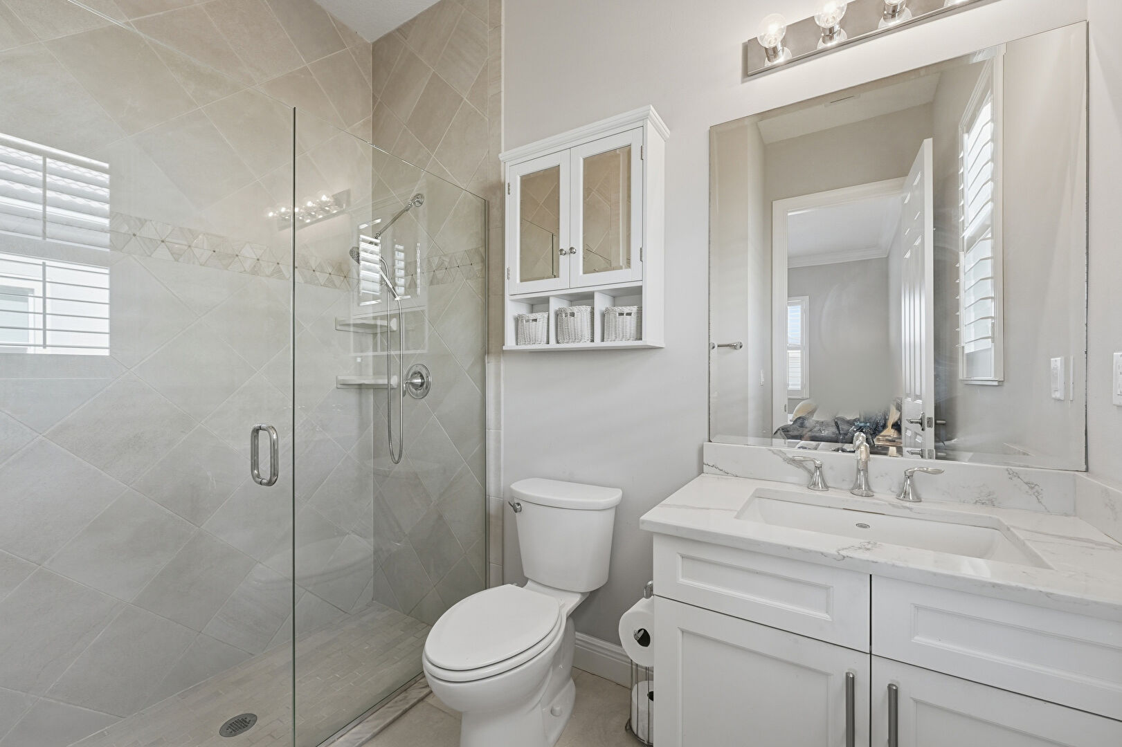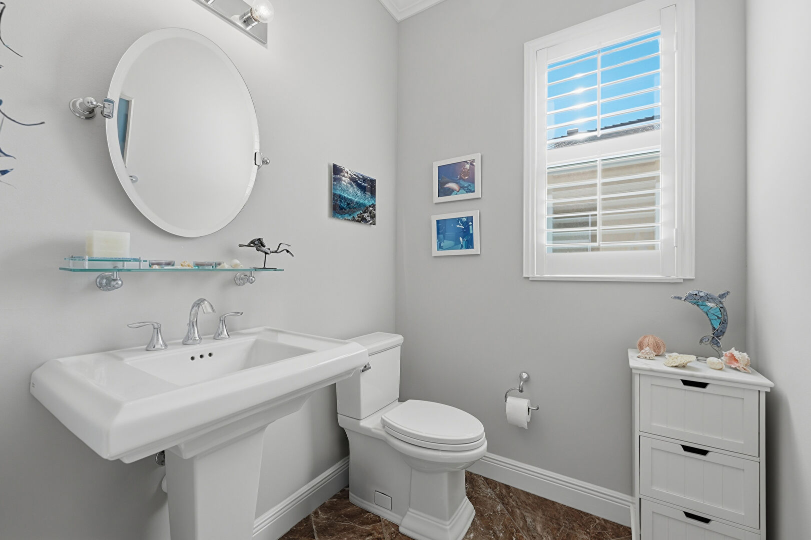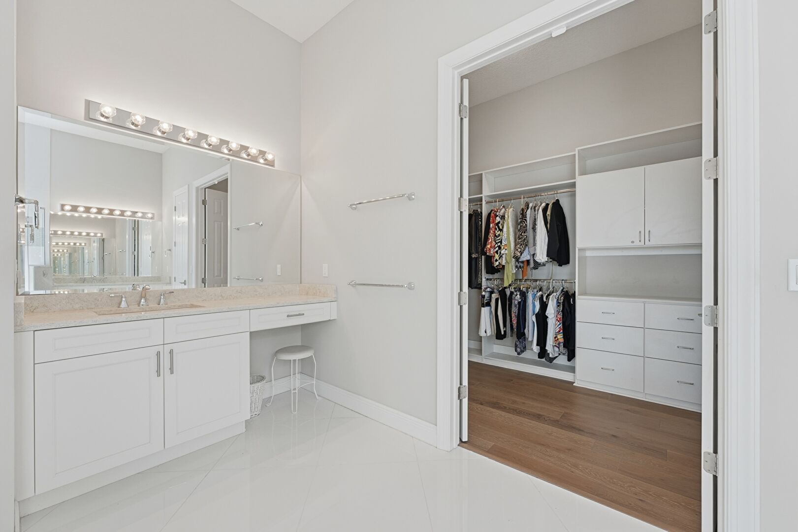 Baseboards Wall, Combined Bath Shower, Crown Molding, Drywall, Ensuite Bathroom, Full Bathroom, Half Bathroom, Natural Light, Tile Floor, Vanity, Baseboards Wall, Natural Light, Tile Floor, Walk In Closet