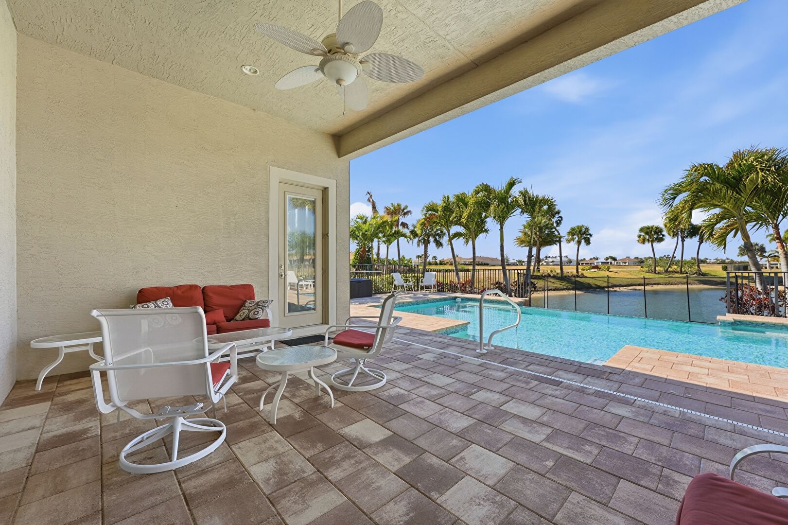 Fence, Handrail, Outdoor Living Space, Patio, Pool, Pool Hot Tub Combo, Residential View, Water View, Fence, Handrail, Waterfront
