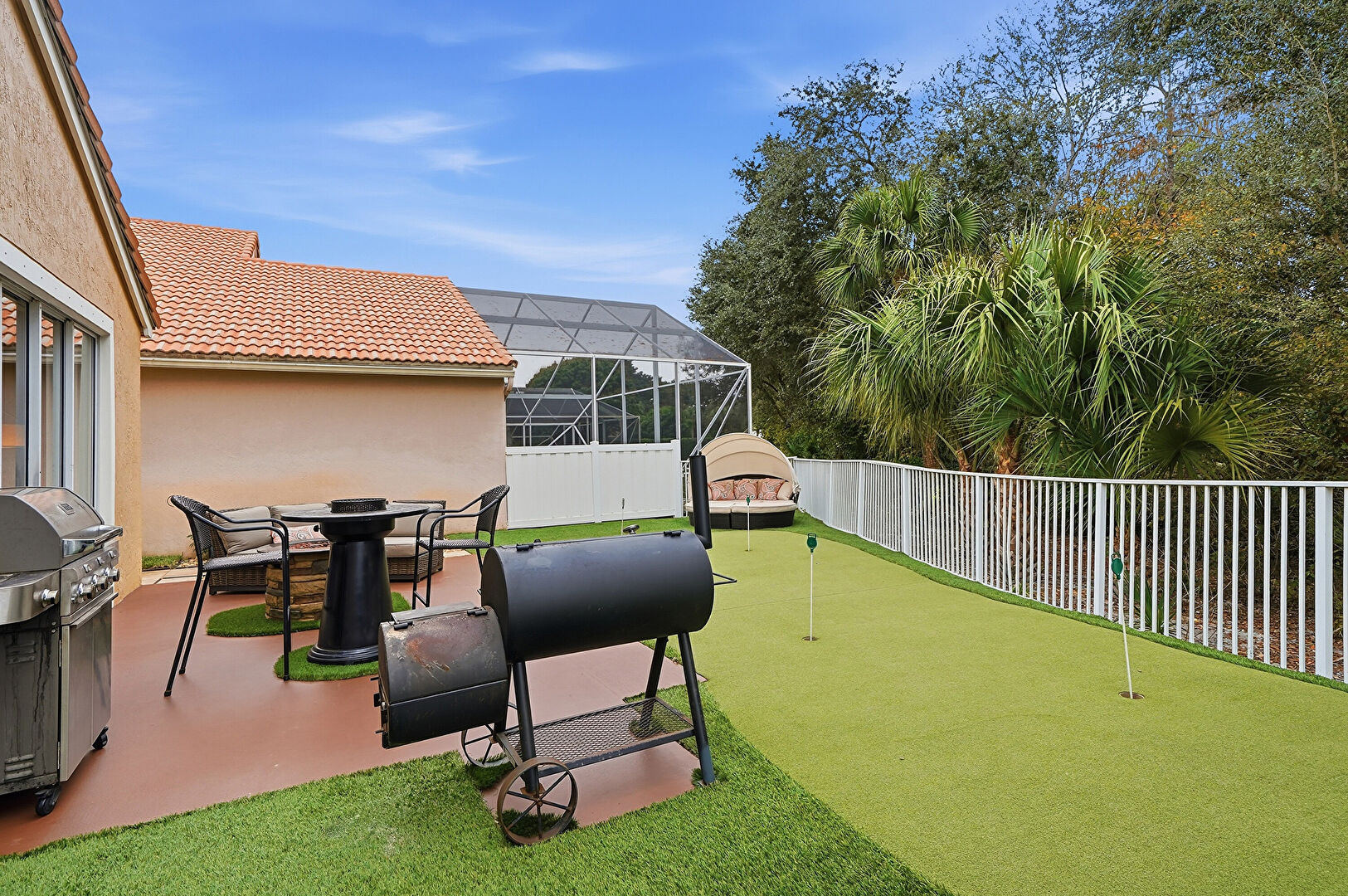 Fence, Grill, Outdoor Dining Area, Patio, Putting Green, Sunroom, Lanai, Putting Green