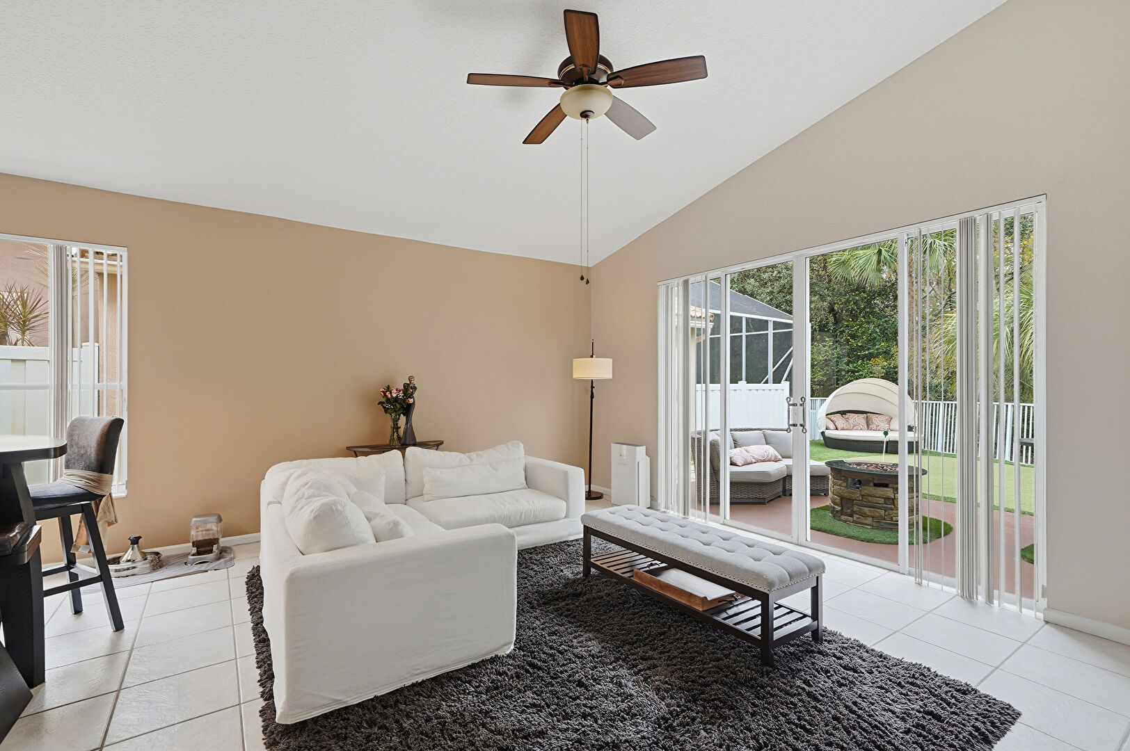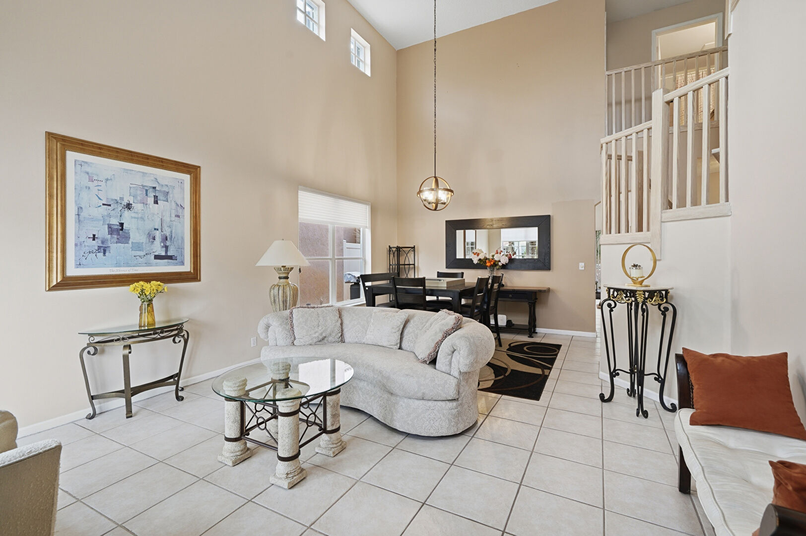 Baseboards Wall, Carpet, Ceiling Fan, Drywall, High Ceiling, Natural Light, Tile Floor, Vaulted Ceiling, Vent, Arched Walkways, Baseboards Wall, Vaulted Ceiling, Vent
