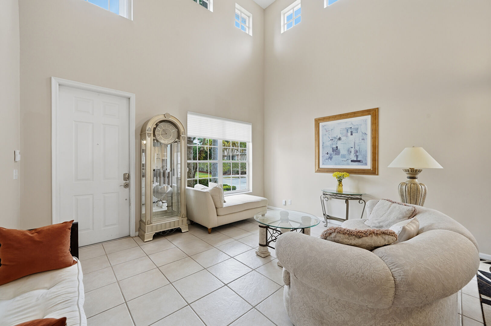 Drywall, High Ceiling, Natural Light, Tile Floor, Baseboards Wall