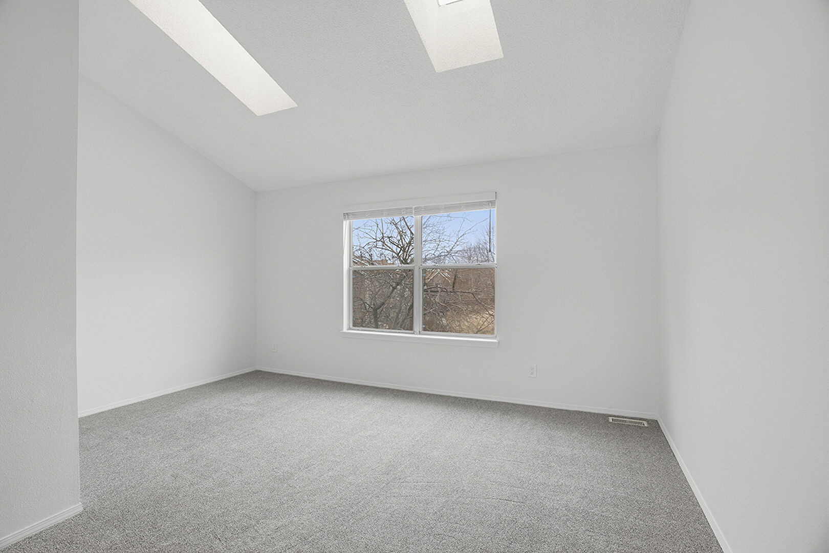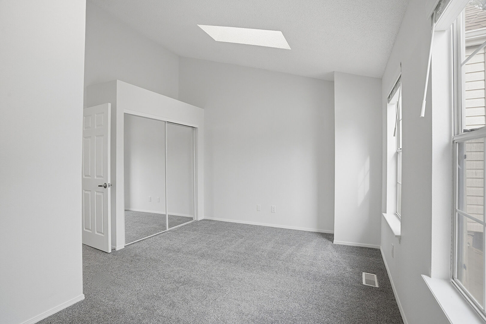 Baseboards Wall, Carpet, Closet, Drywall, High Ceiling, Natural Light, Skylight, Vaulted Ceiling, Vent, Drywall, Vaulted Ceiling