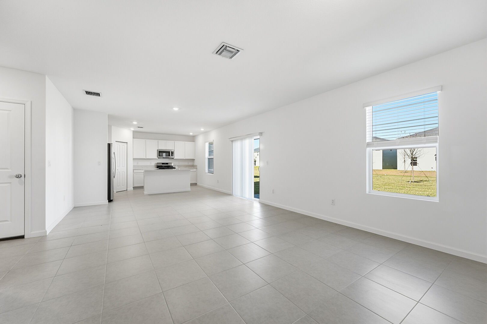 Baseboards Wall, Drywall, Natural Light, Recessed Lighting, Stairs, Tile Floor, Vent, L Shaped Kitchen, Natural Light