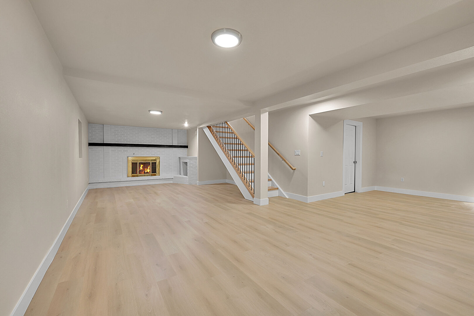 Baseboards Wall, Basement, Drywall, Fireplace, Recessed Lighting, Stairs, Wood Finish Floor, Vent, Wood Finish Floor