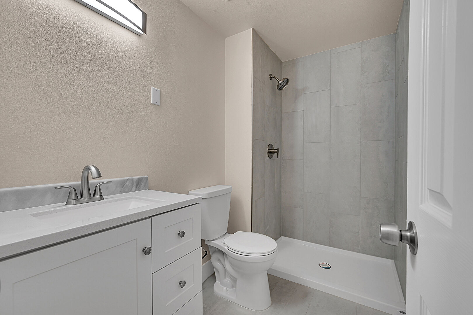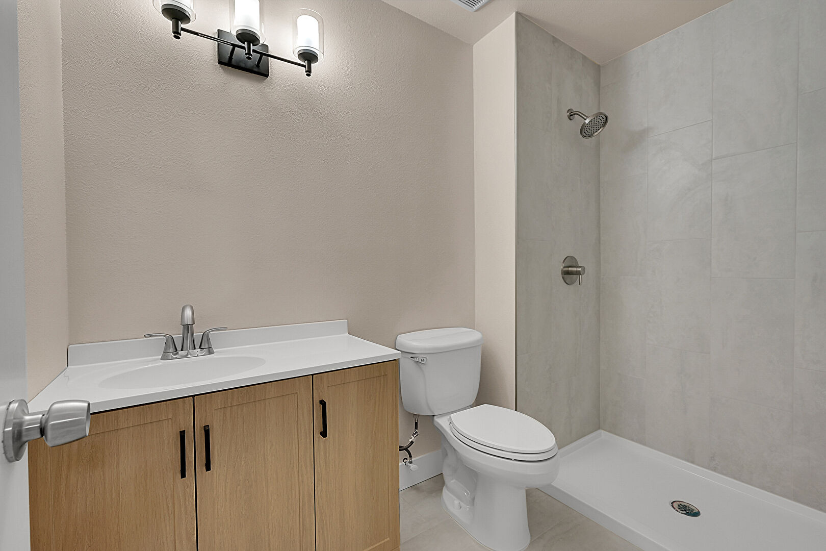Drywall, Full Bathroom, Tile Floor, Vanity, Baseboards Wall