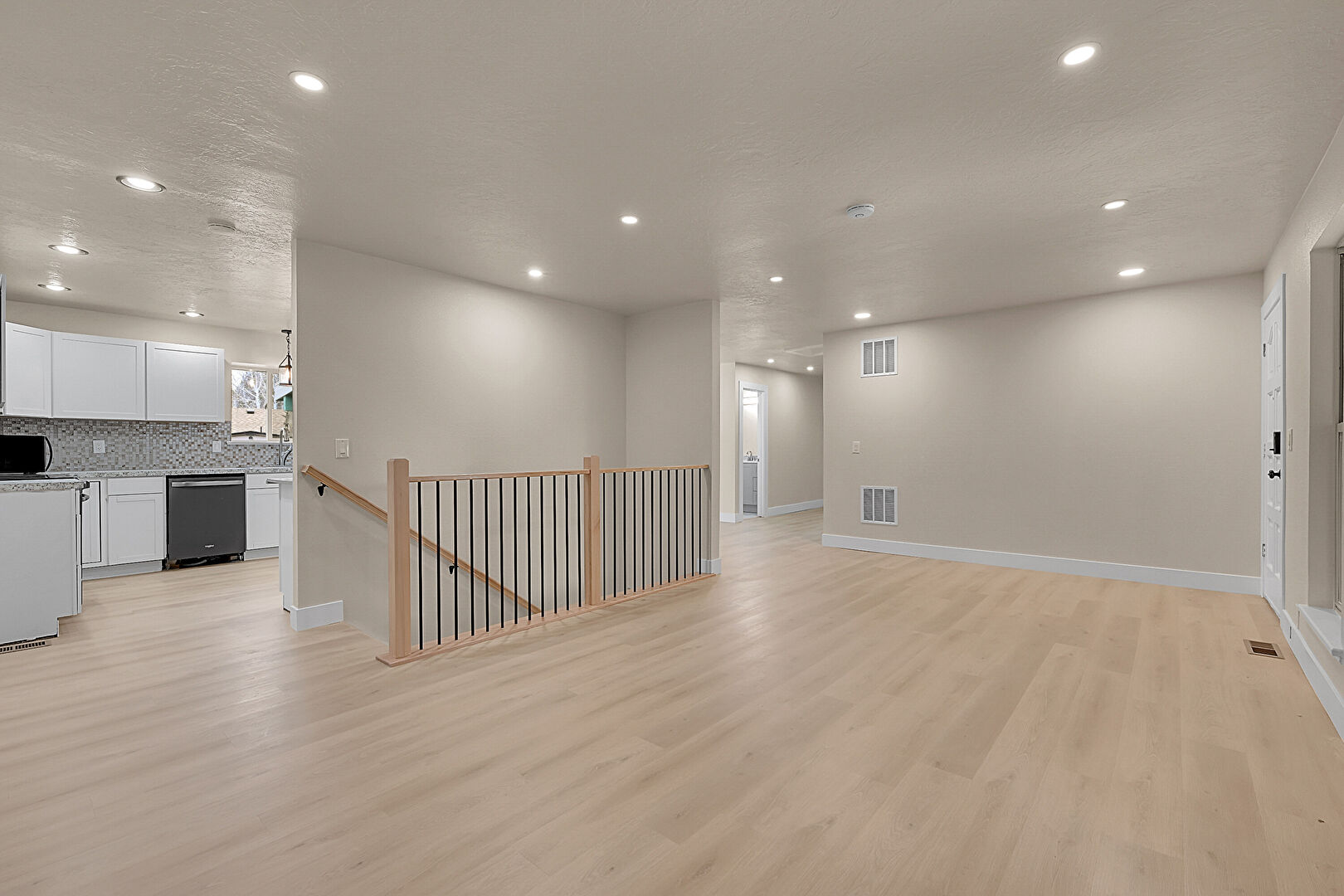 Arched Walkways, Baseboards Wall, Drywall, Natural Light, Notable Chandelier, Recessed Lighting, Vent, Wood Finish Floor, Drywall, Recessed Lighting, Wood Finish Floor