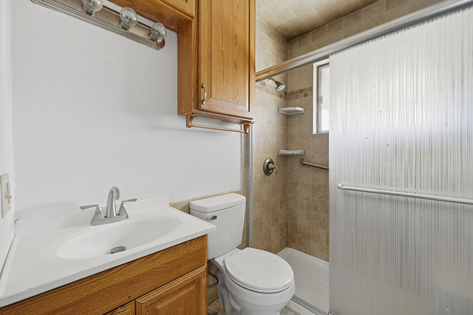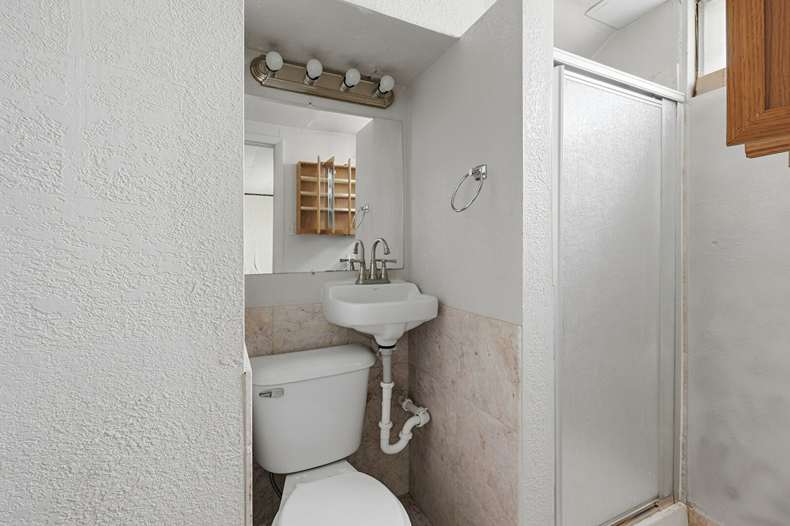 Drywall, Full Bathroom, Textured Wall, Tile Wall, Vanity, Natural Light, Wainscot Wall