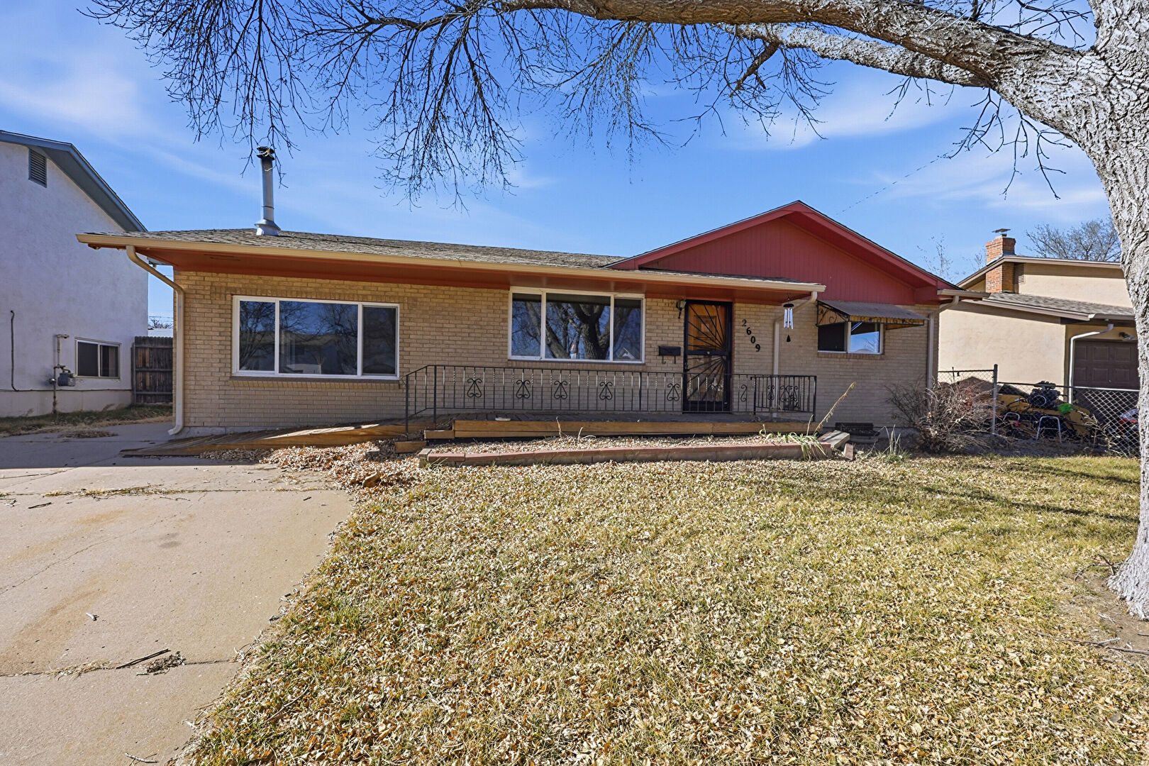 Brick Siding, Concrete Foundation, Downspout, Driveway, Fence, Gutters, Lawn, Parking Pad, Porch, Shingle Roof, Awning, Stoop