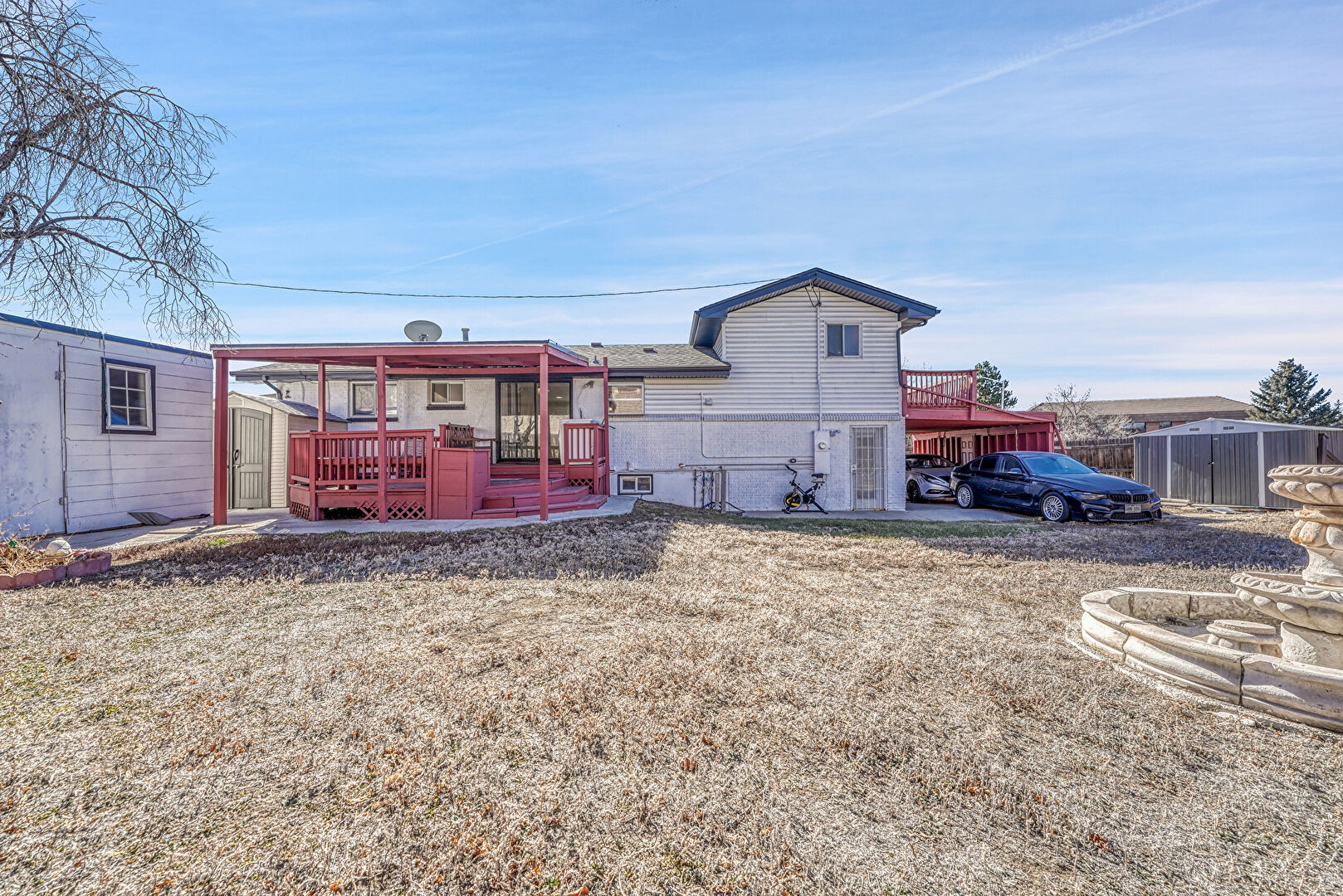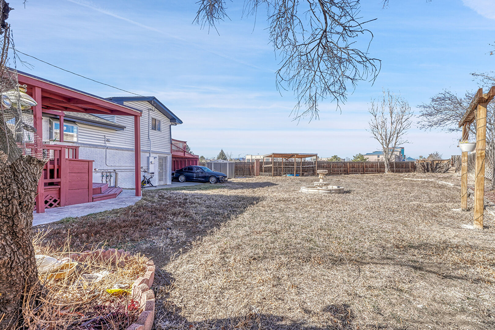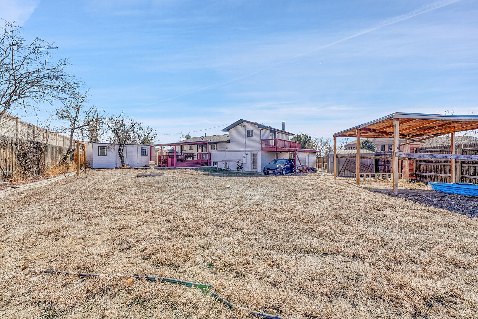 Deck, Electric Meter, Fountain, Gazebo, Horizontal Siding, Lawn, Outdoor Structure, Satellite Dish, Shed, Fence