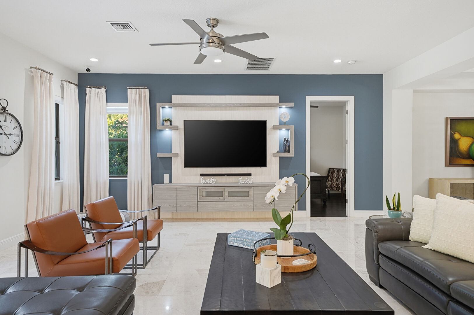 Baseboards Wall, Ceiling Fan, Drywall, Natural Light, Office Area, Recessed Lighting, Vent, Wood Finish Floor, Ceiling Fan, Drywall, Natural Light
