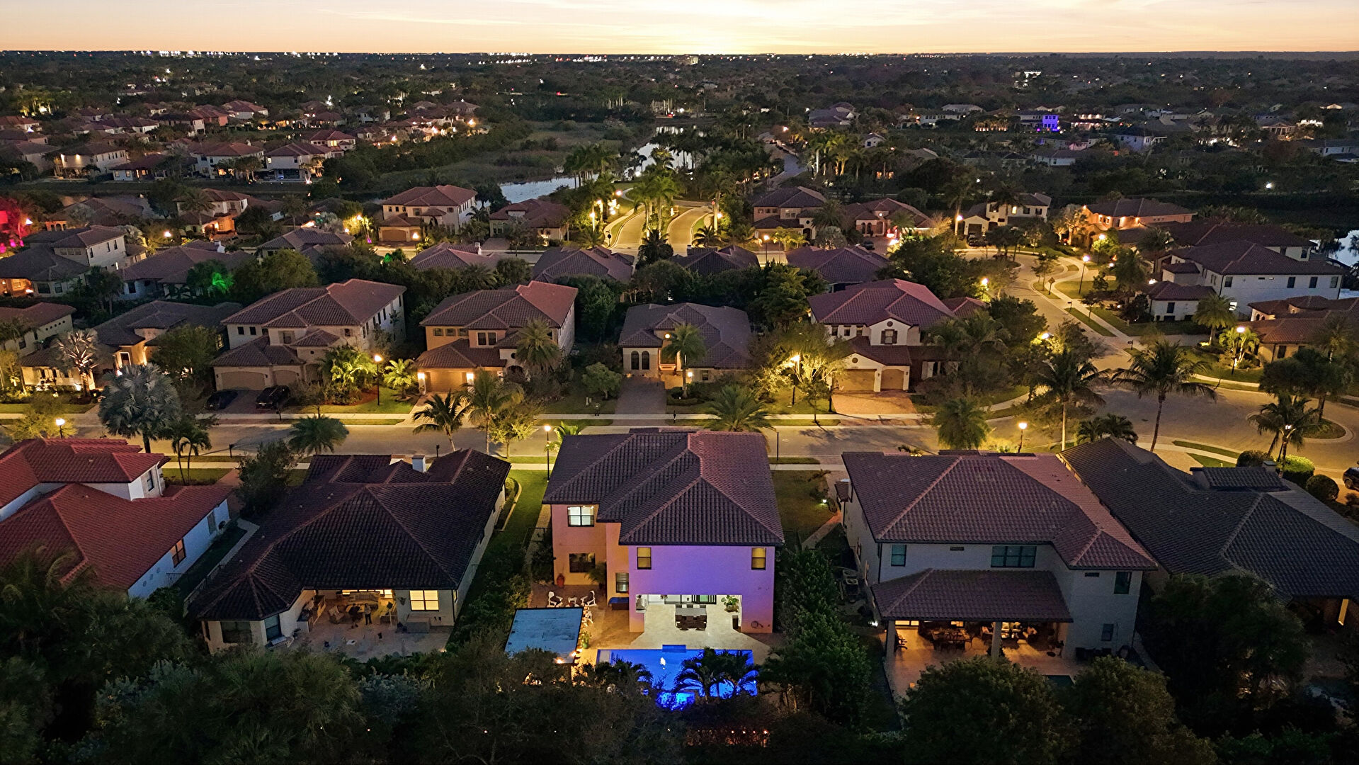 Built In Garage, Downspout, Driveway, Fence, Gutters, Lawn, Pad Mount Transformer, Stucco Siding, Tile Roof, Driveway, Gutters, Lawn, Stucco Siding