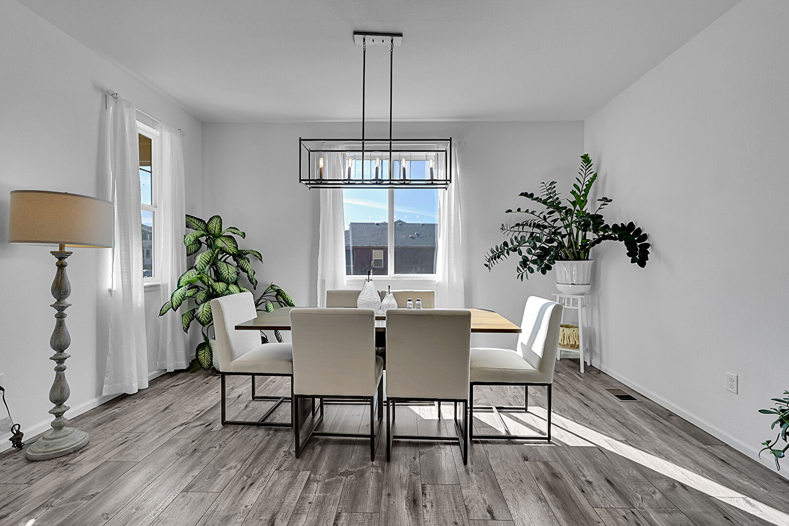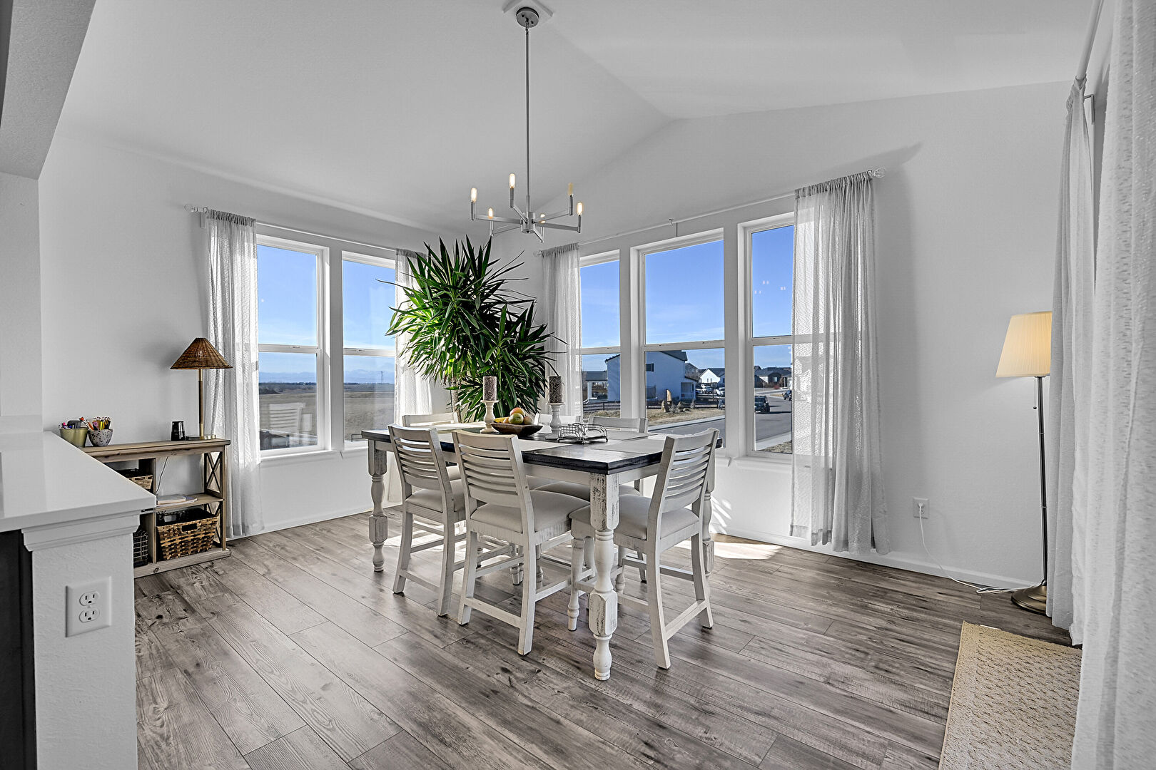 Baseboards Wall, Cathedral Ceiling, Drywall, Natural Light, Notable Chandelier, Vaulted Ceiling, Vent, Wood Finish Floor, Natural Light, Notable Chandelier