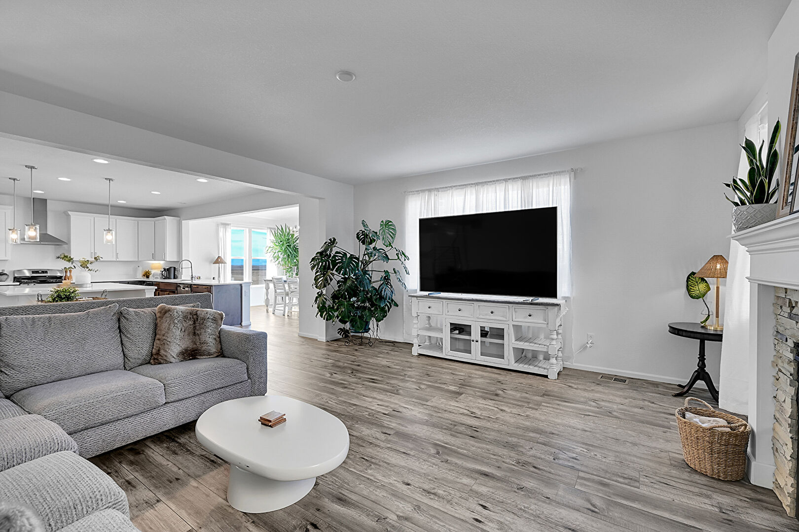 Baseboards Wall, Drywall, Fireplace, Recessed Lighting, Vent, Wood Finish Floor, Natural Light, Wood Finish Floor