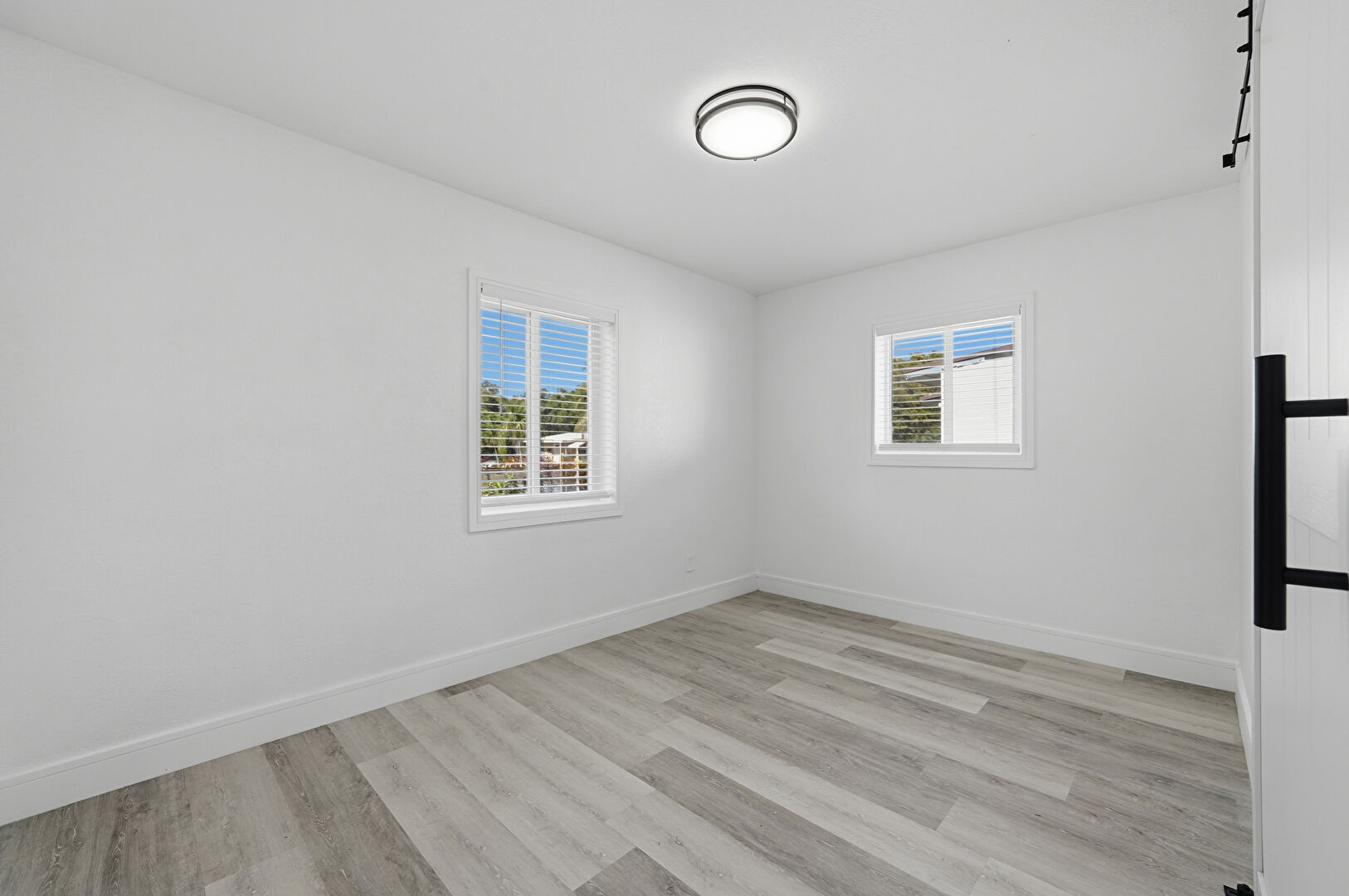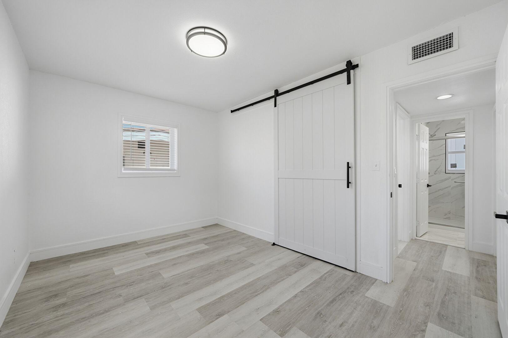 Barn Door, Baseboards Wall, Drywall, Natural Light, Vent, Wood Finish Floor, Drywall, Natural Light, Vent