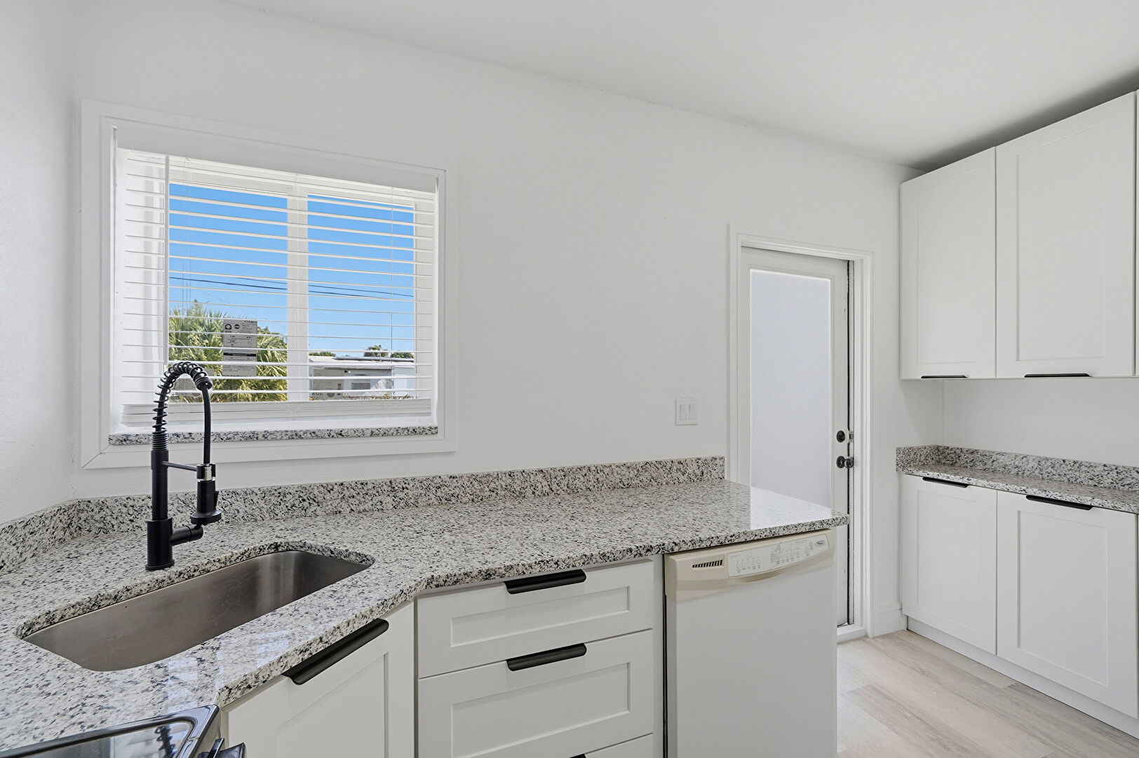 Baseboards Wall, Drywall, Kitchen Peninsula, Natural Light, Recessed Lighting, Shaker Cabinets, Stone Countertops, U Shaped Kitchen, Wood Finish Floor, Drywall, Recessed Lighting, Shaker Cabinets, U Shaped Kitchen