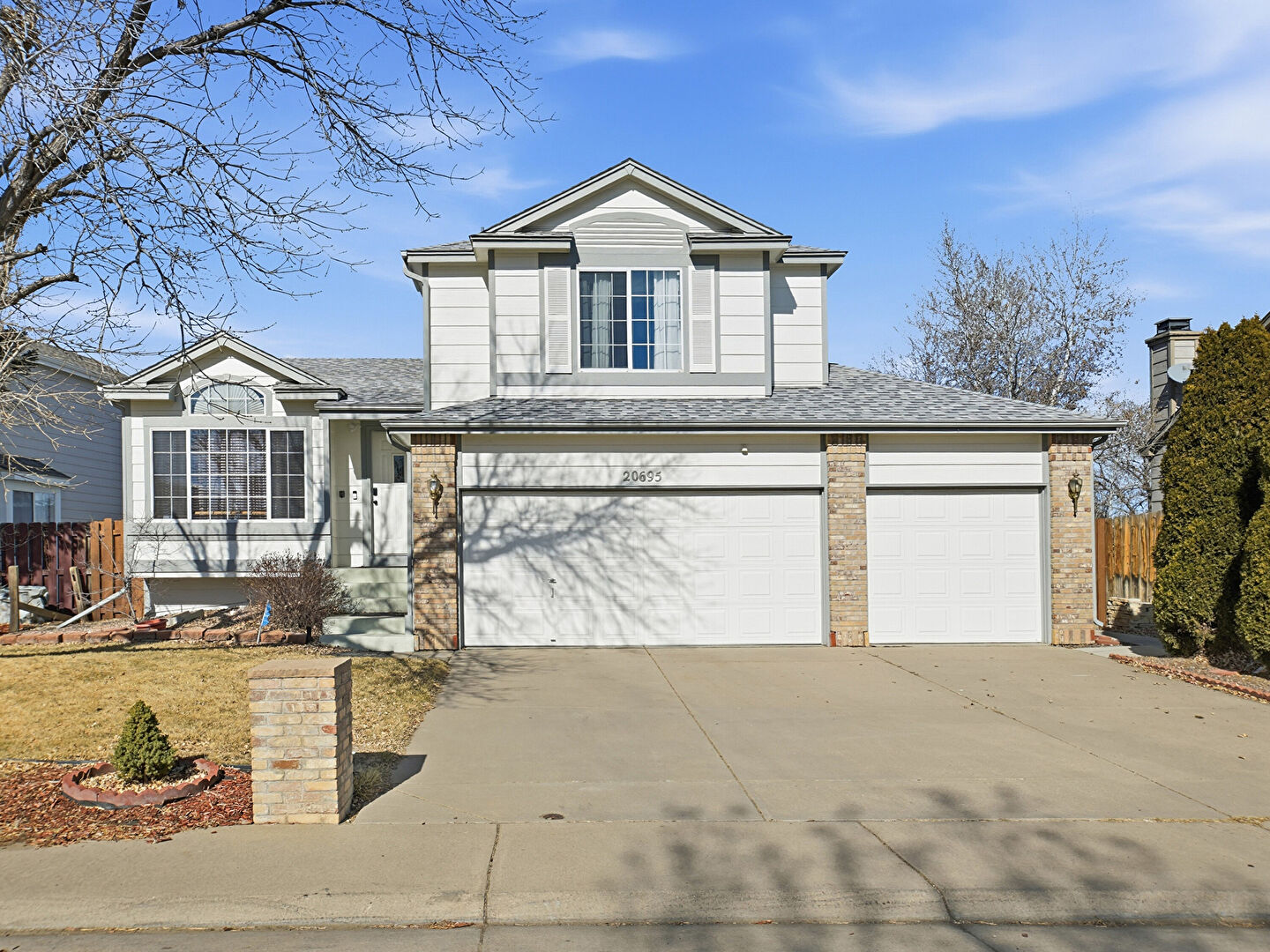 Brick Siding, Built In Garage, Concrete Foundation, Downspout, Driveway, Fence, Gutters, Horizontal Siding, Lawn, Shingle Roof, Built In Garage, Driveway, Fence, Lawn