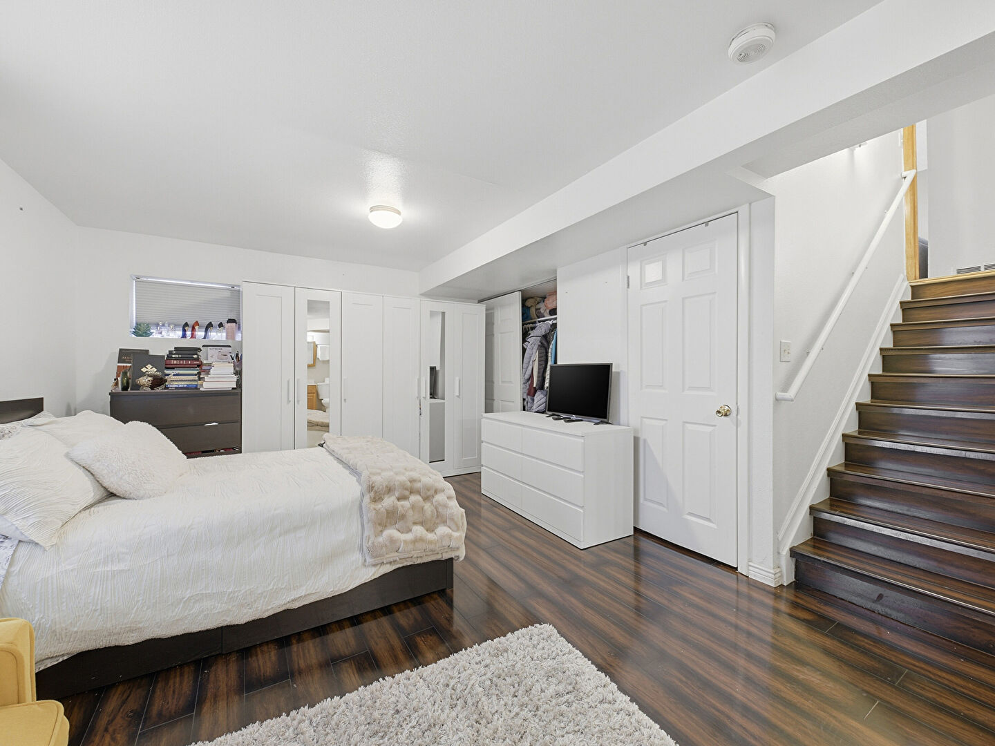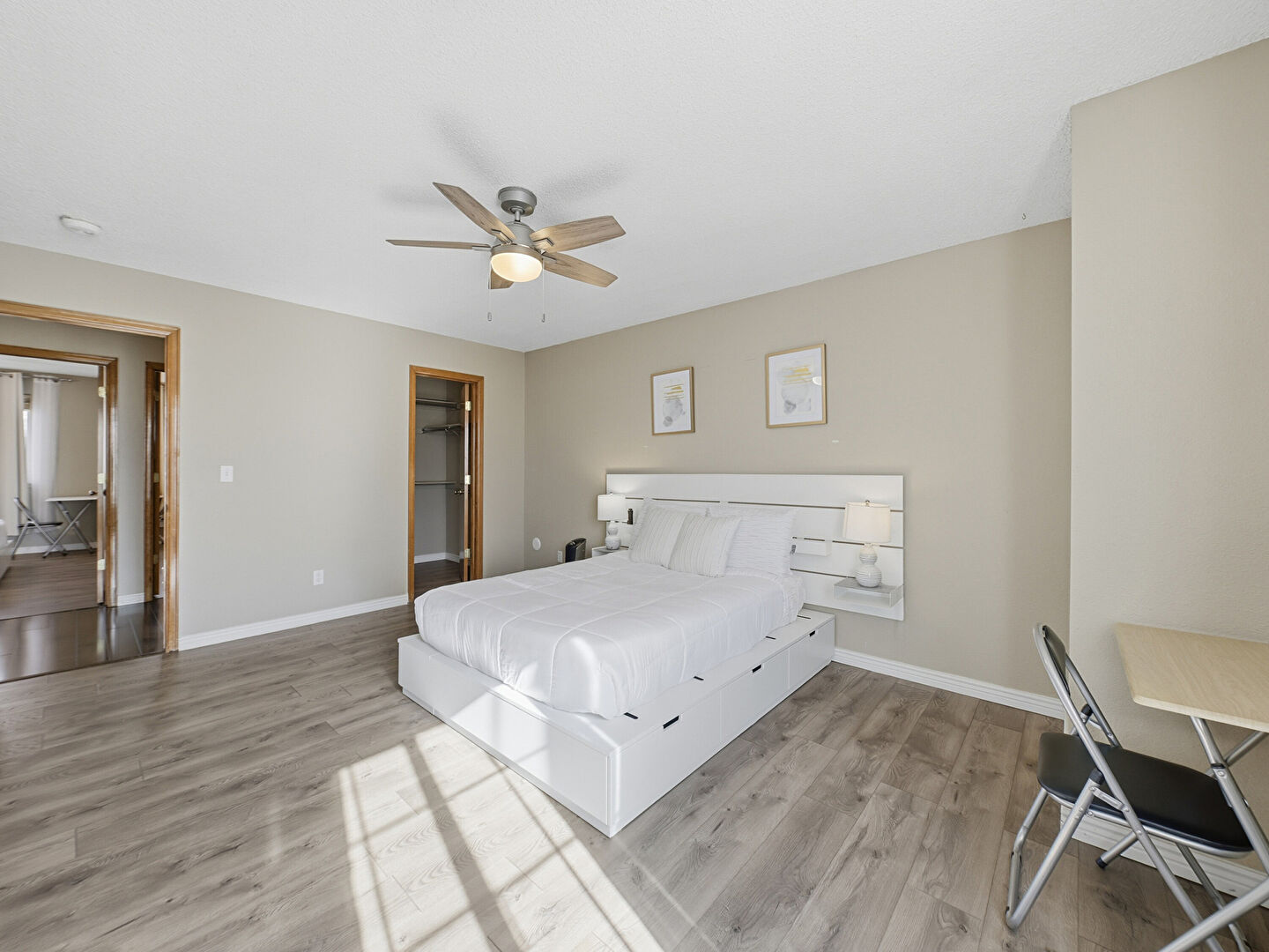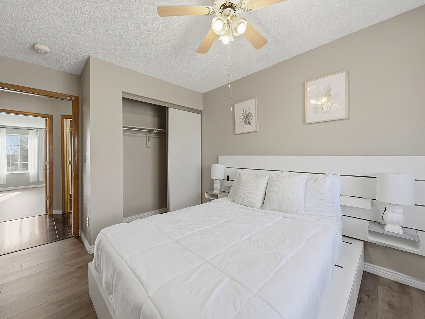 Baseboards Wall, Ceiling Fan, Closet, Drywall, Ensuite Bathroom, Natural Light, Smoke Carbon Monoxide Detector, Textured Ceiling, Textured Wall, Vent, Walk In Closet, Wood Finish Floor, Baseboards Wall, Basement, Ceiling Fan, Closet, Drywall, Ensuite Bathroom, Natural Light, Textured Ceiling, Wood Finish Floor