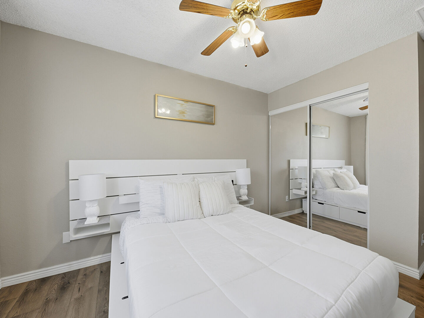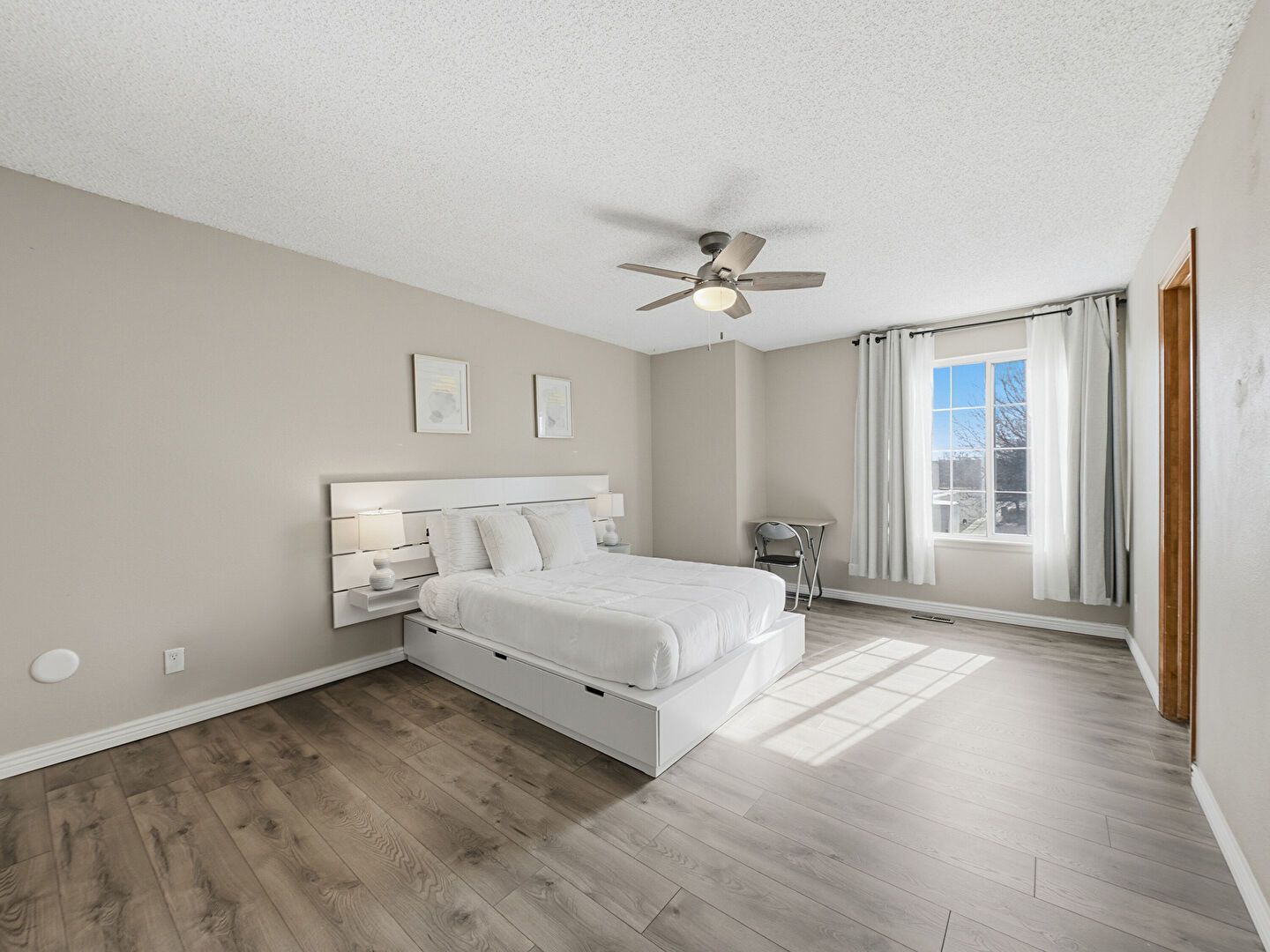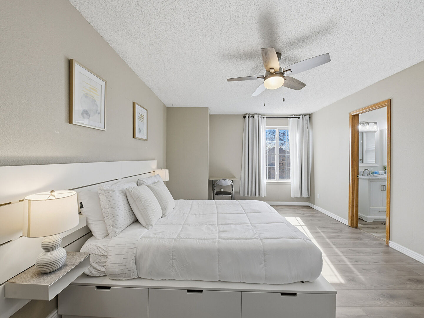 Baseboards Wall, Ceiling Fan, Closet, Drywall, Ensuite Bathroom, Natural Light, Smoke Carbon Monoxide Detector, Textured Ceiling, Textured Wall, Vent, Walk In Closet, Wood Finish Floor, Baseboards Wall, Basement, Ceiling Fan, Closet, Drywall, Ensuite Bathroom, Natural Light, Textured Ceiling, Wood Finish Floor