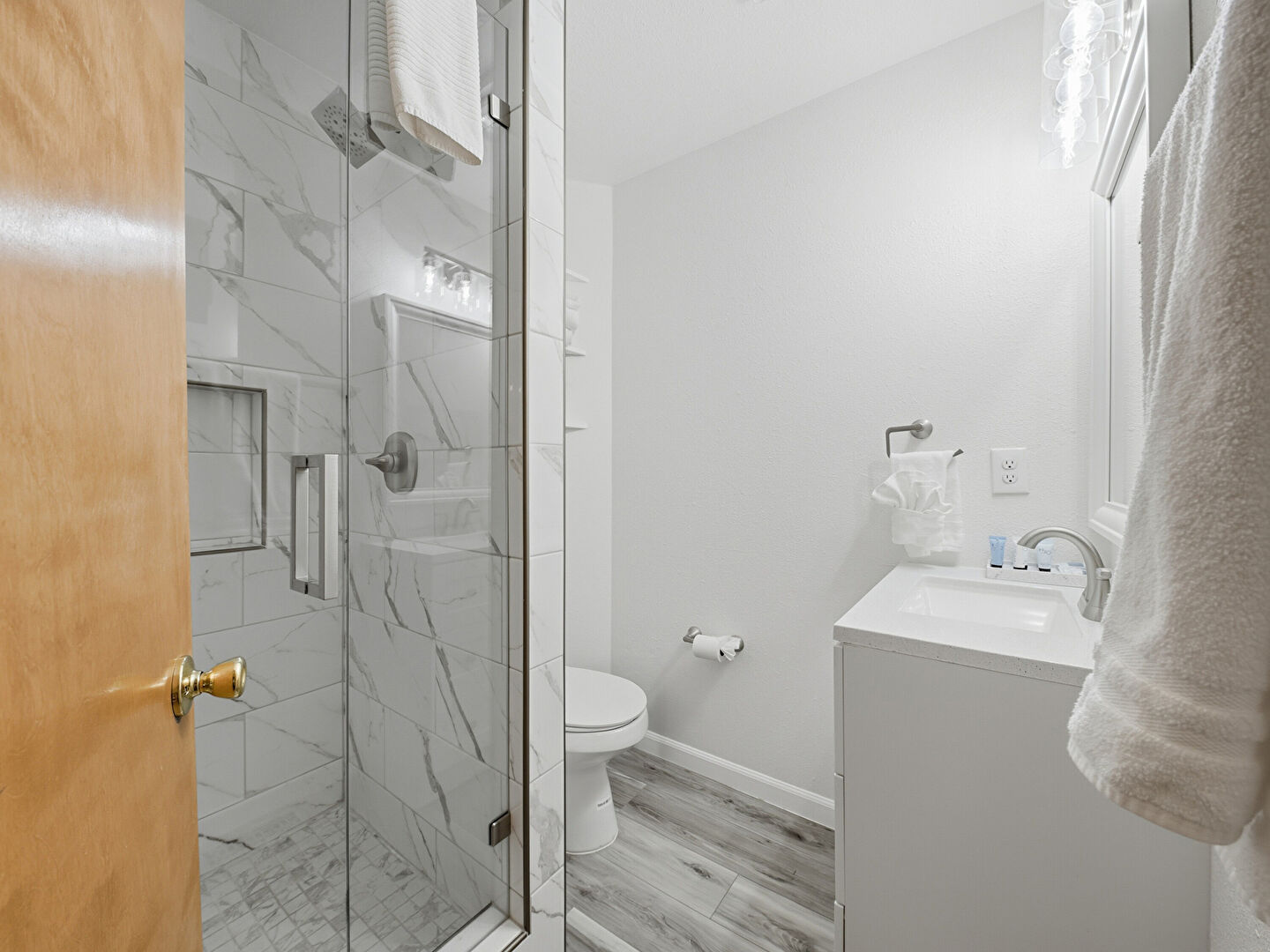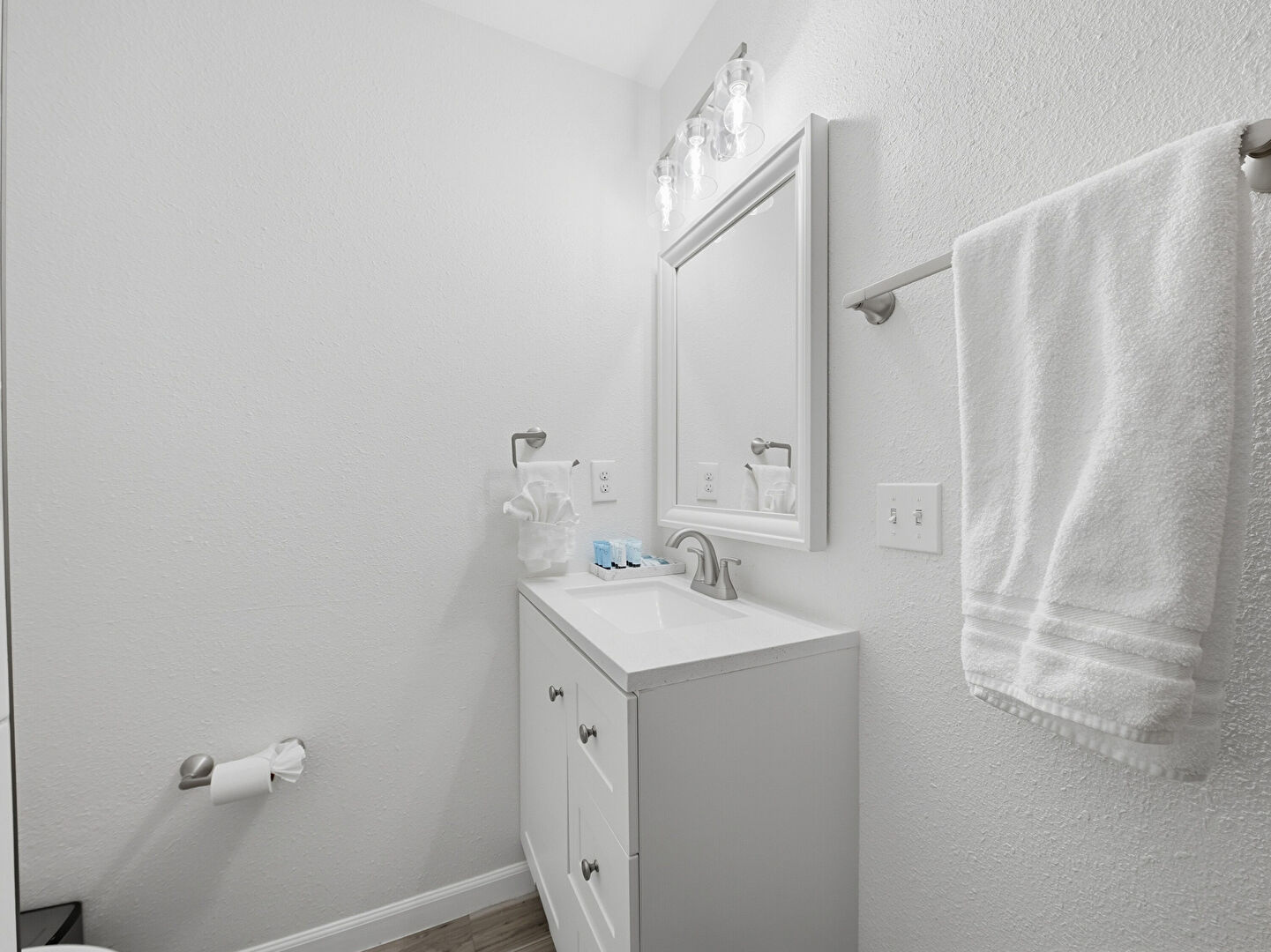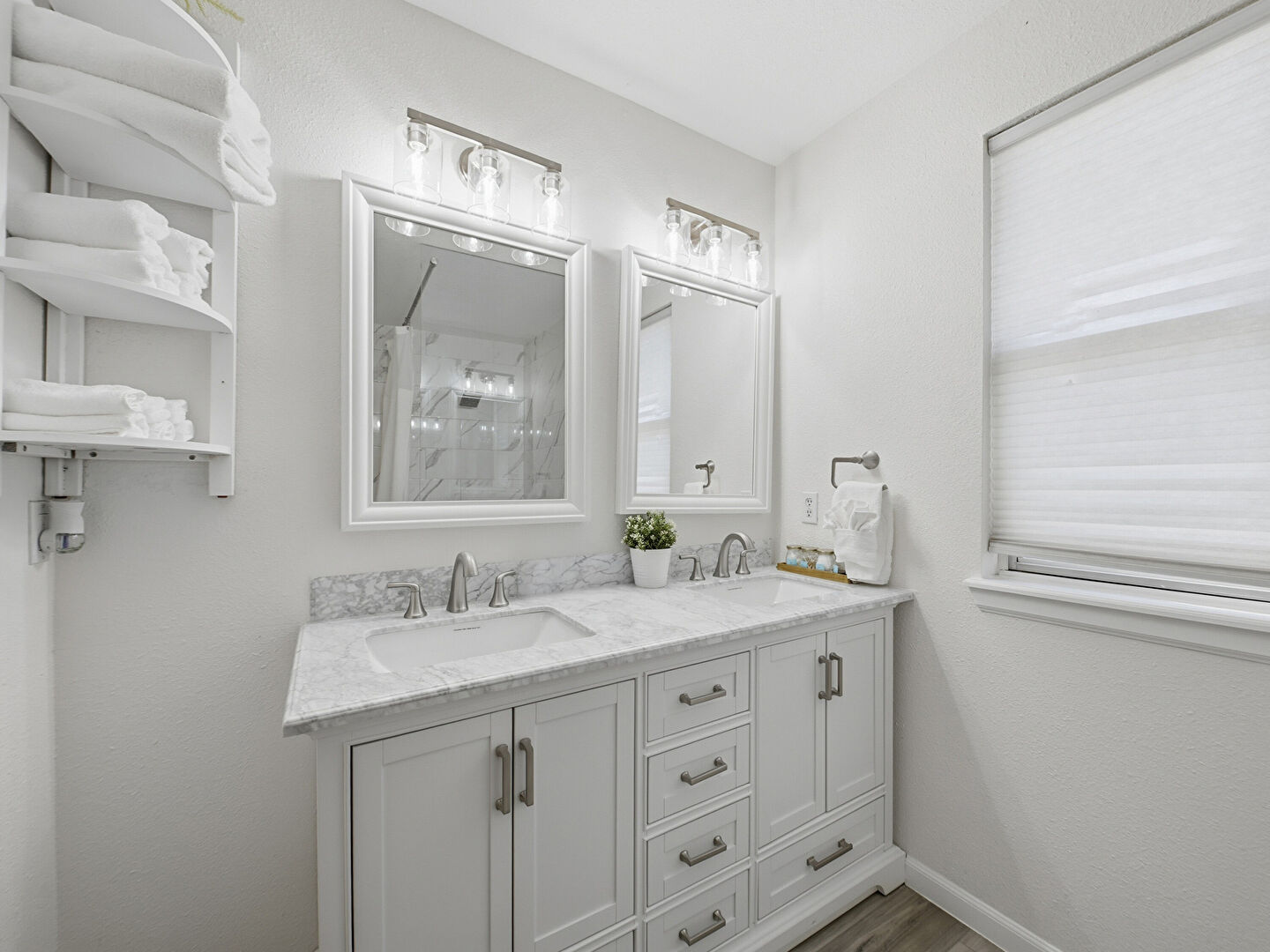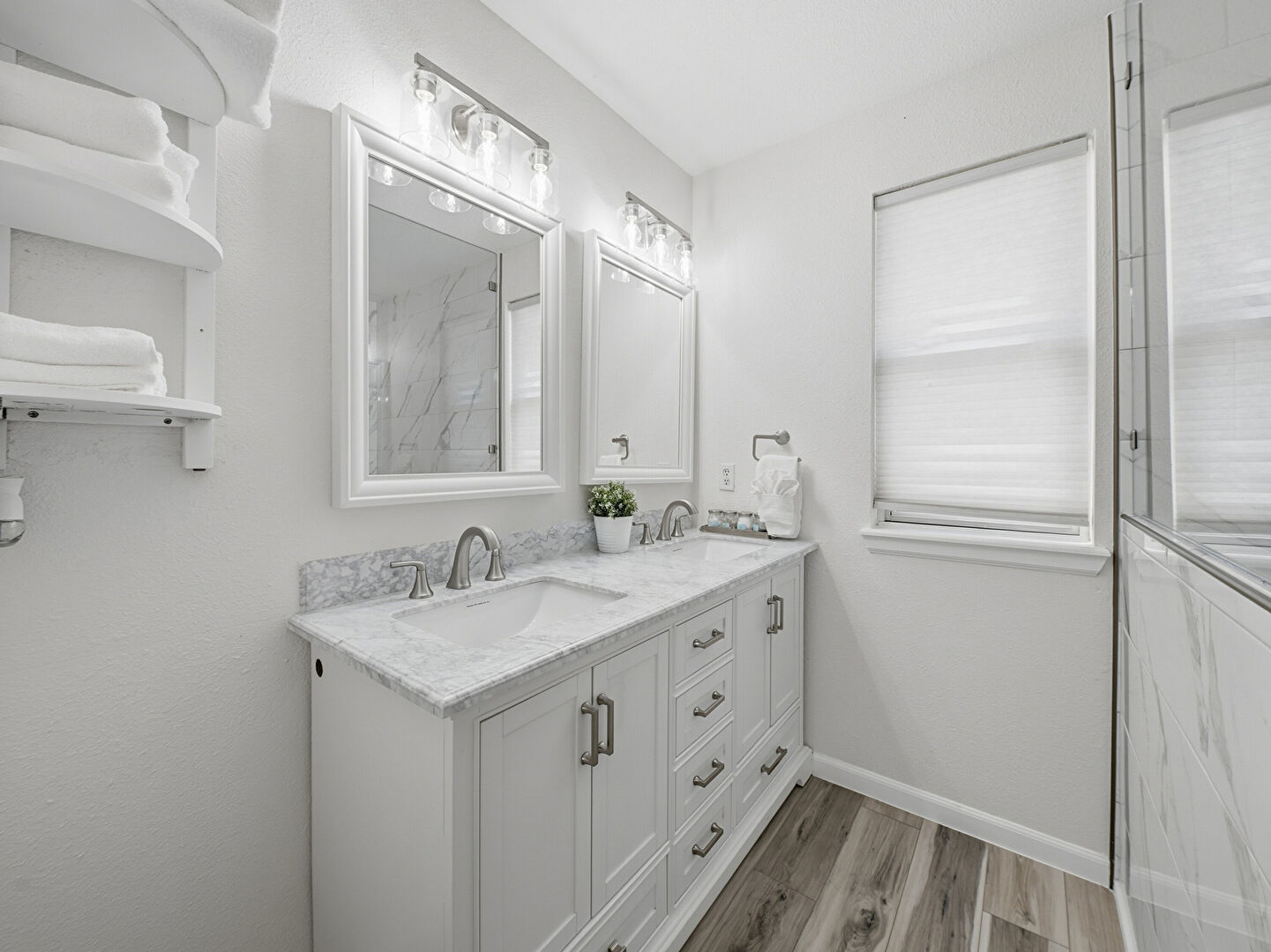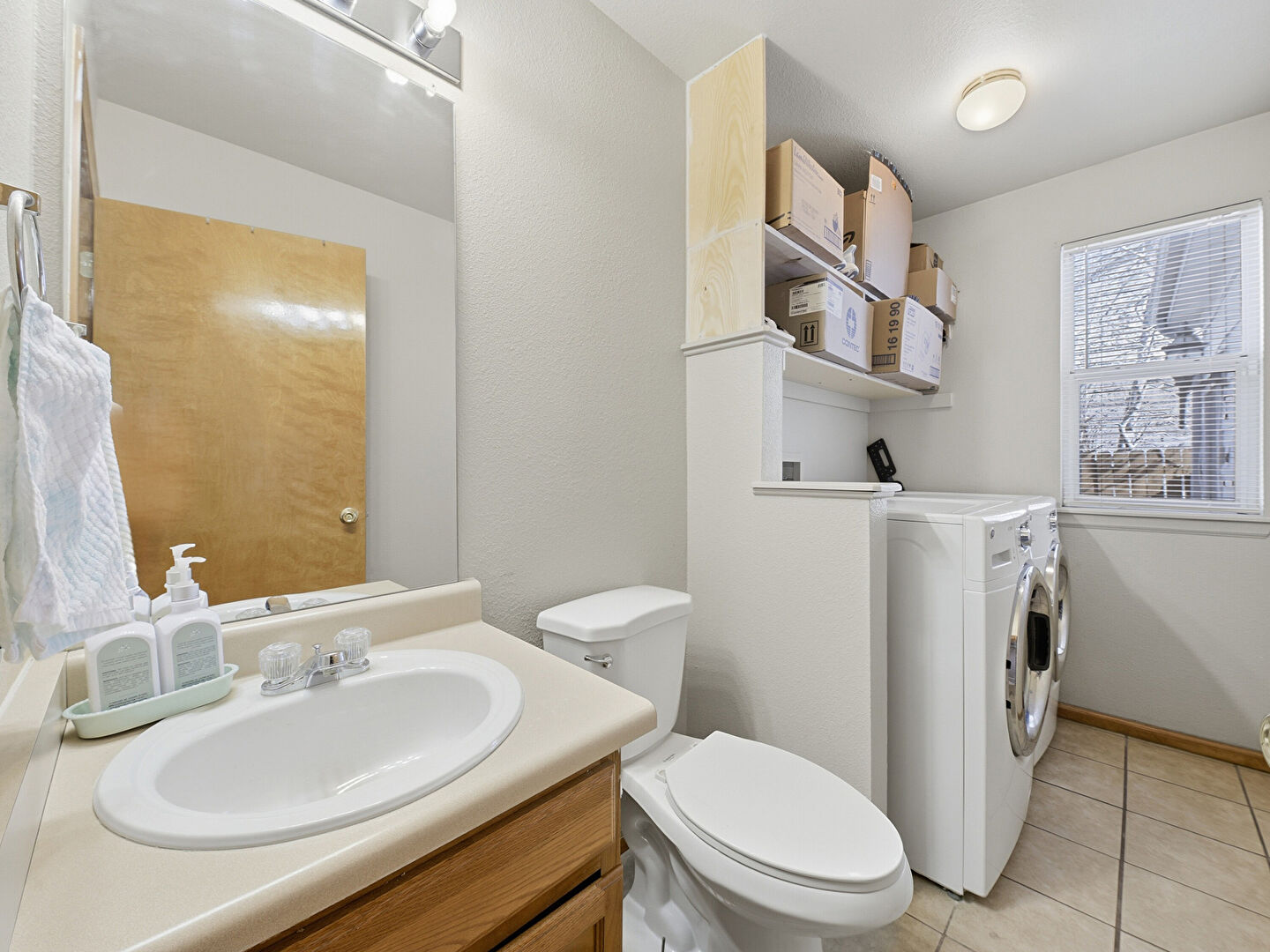 Baseboards Wall, Double Vanity, Drywall, Full Bathroom, Half Bathroom, Laundry, Natural Light, Textured Wall, Tile Floor, Vanity, Wood Finish Floor, Baseboards Wall, Combined Bath Shower, Full Bathroom, Half Bathroom, Vanity, Wood Finish Floor