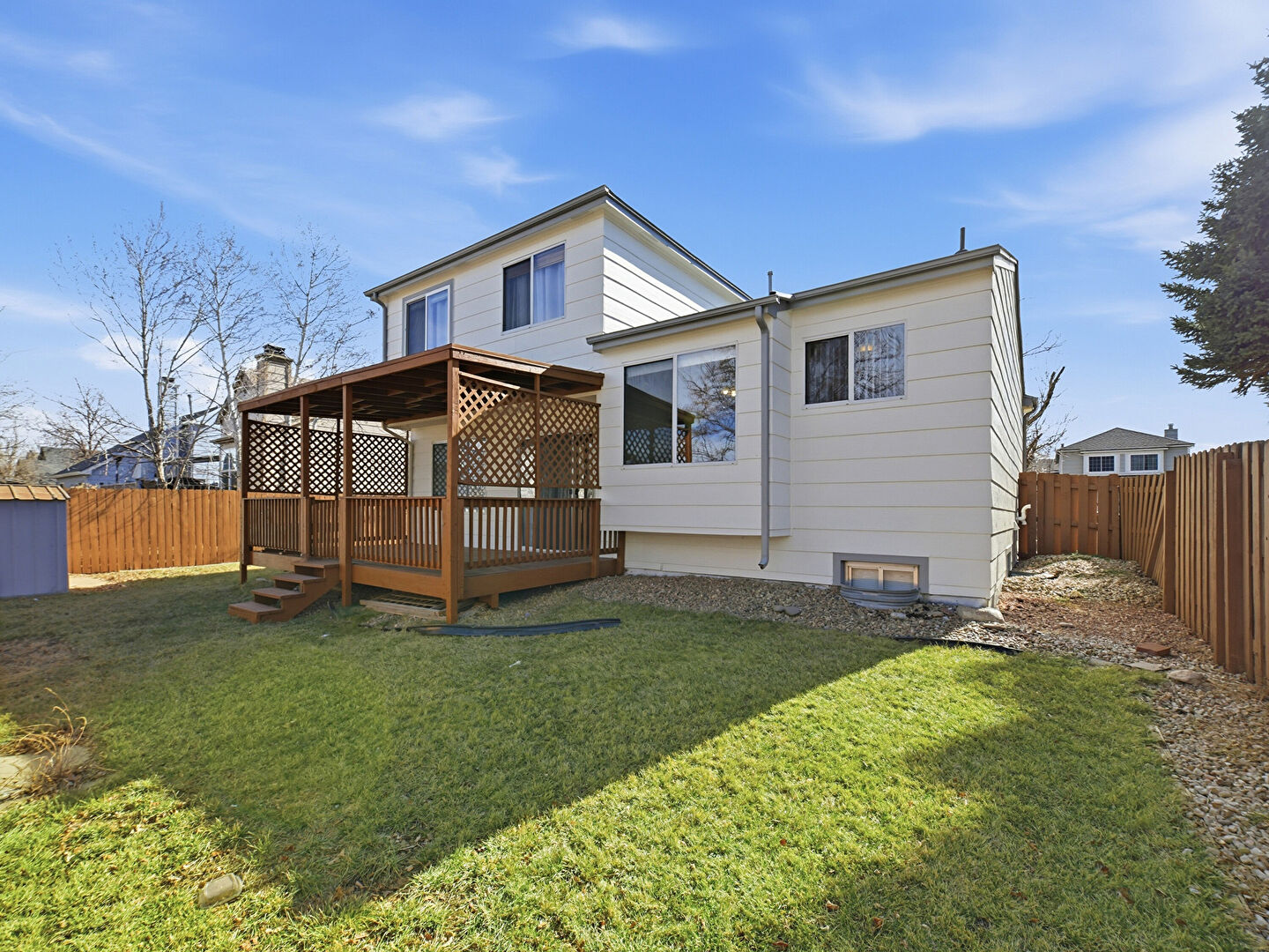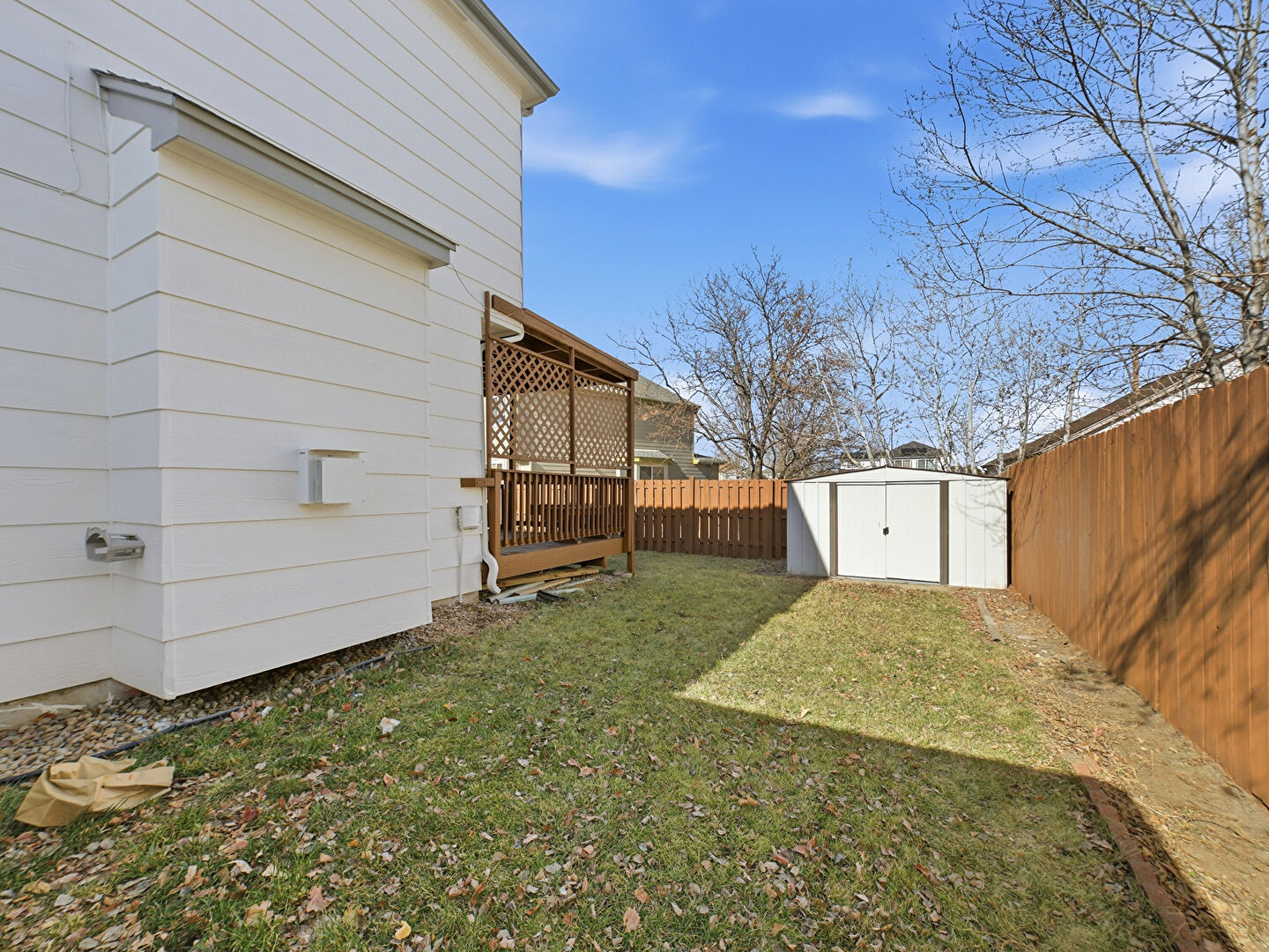 Deck, Fence, Lawn, Outdoor Structure, Pad Mount Transformer, Fence, Shed