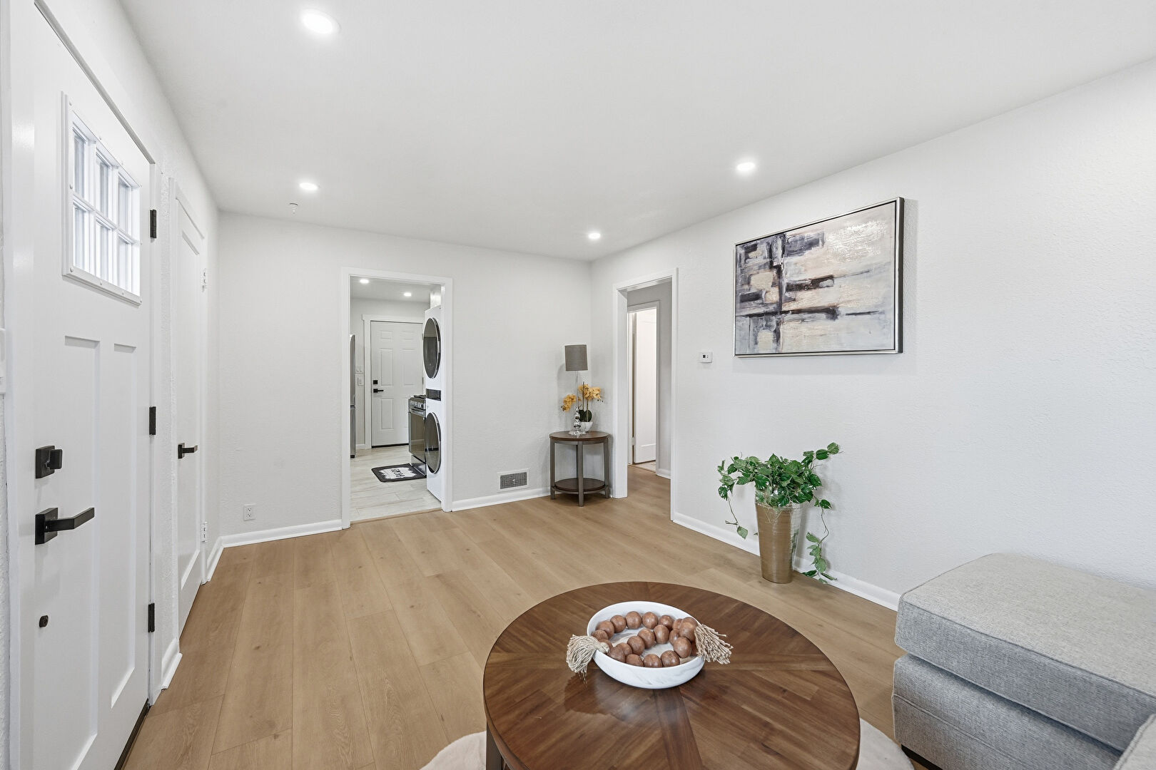 Baseboards Wall, Drywall, Laundry, Natural Light, Recessed Lighting, Vent, Wood Finish Floor