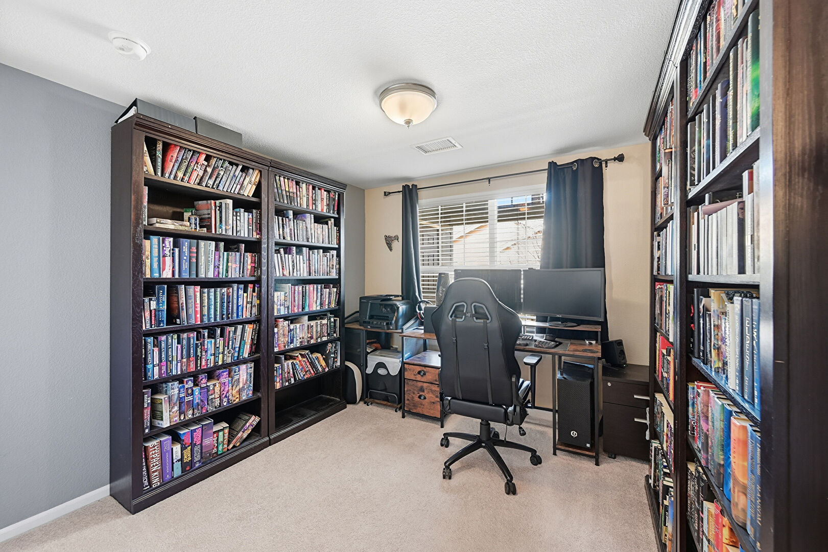 Baseboards Wall, Carpet, Drywall, Natural Light, Office Area, Smoke Carbon Monoxide Detector, Vent, Library