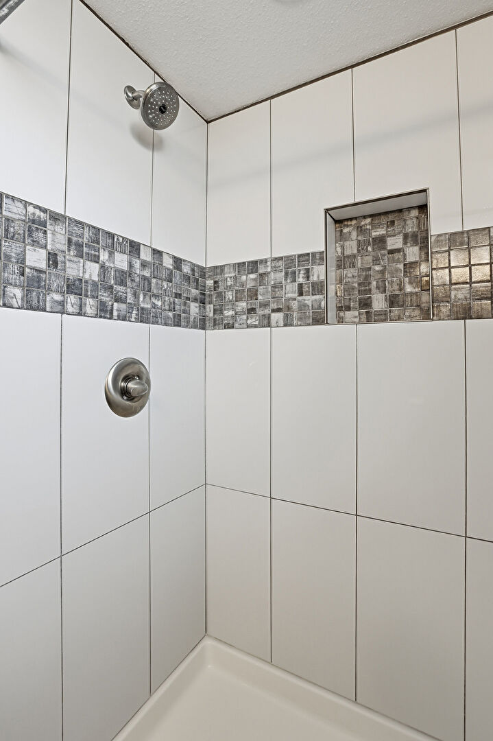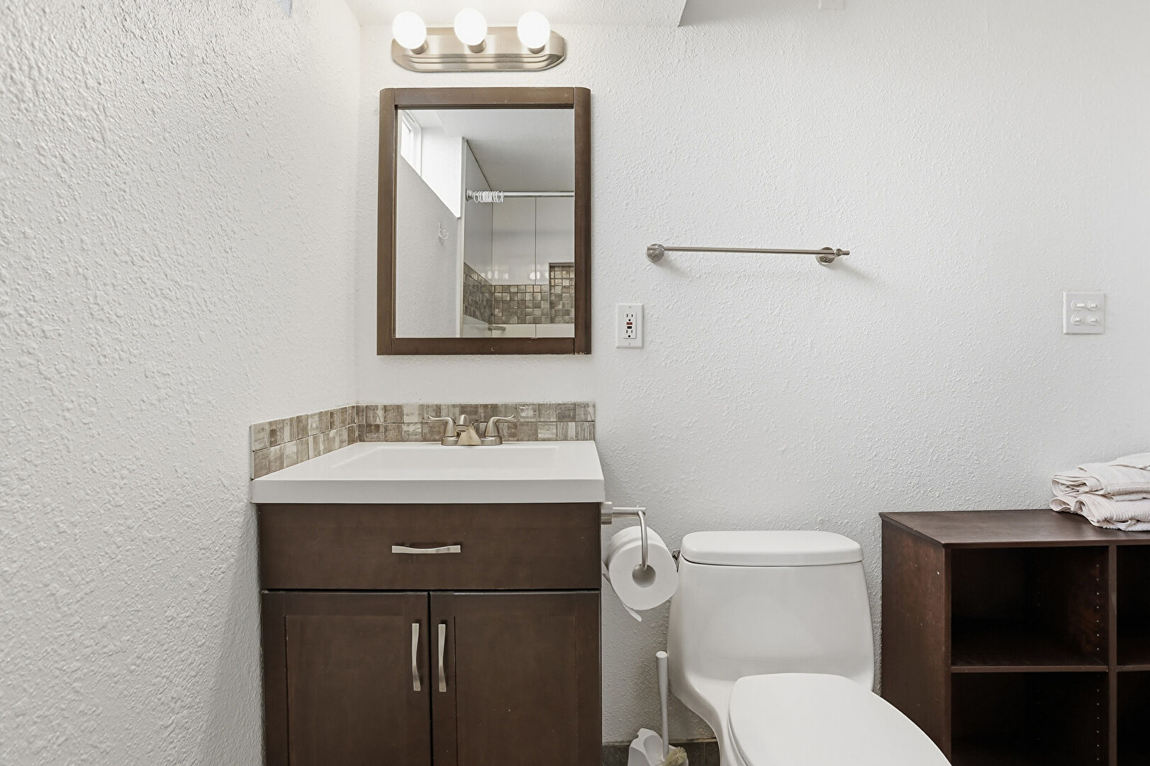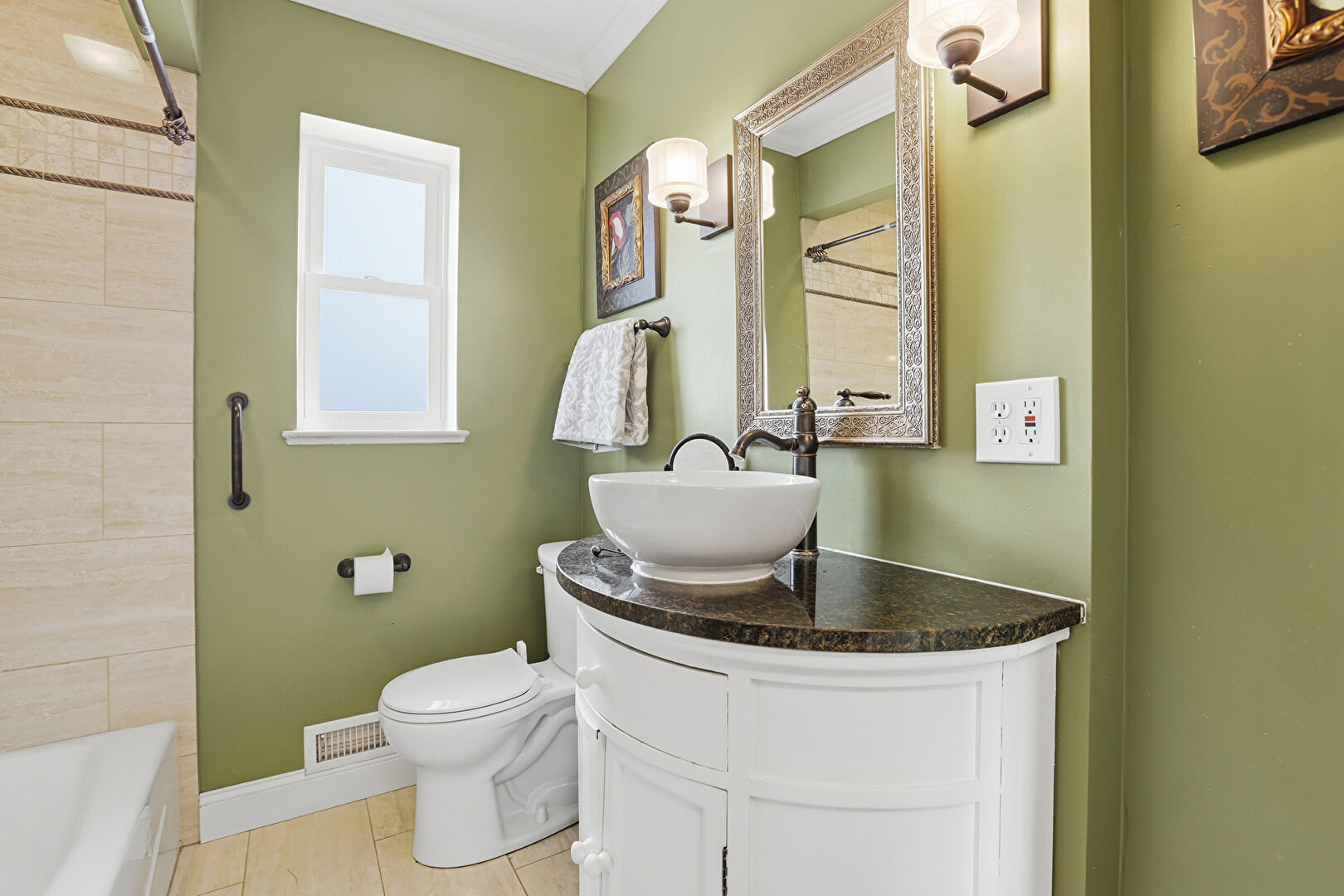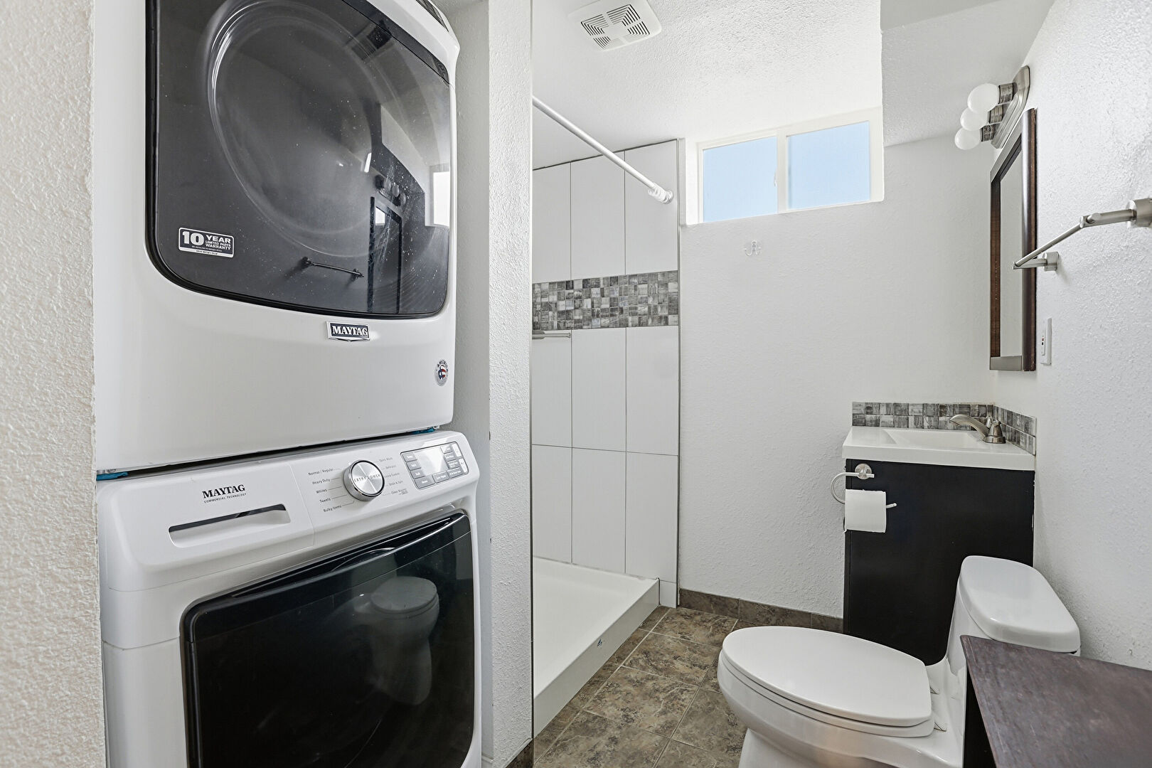 Baseboards Wall, Basement, Combined Bath Shower, Crown Molding, Drywall, Full Bathroom, Laundry, Natural Light, Textured Ceiling, Textured Wall, Tile Floor, Vanity, Vent, Baseboards Wall, Combined Bath Shower, Drywall, Full Bathroom, Textured Wall