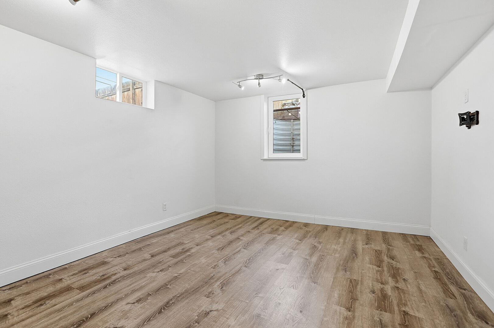 Baseboards Wall, Basement, Closet, Crown Molding, Drywall, Natural Light, Notable Chandelier, Track Lighting, Two Closets, Vent, Wood Finish Floor, Baseboards Wall, Basement, Crown Molding, Drywall, Natural Light, Notable Chandelier, Wood Finish Floor